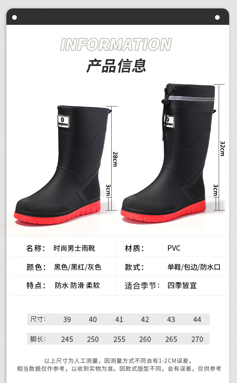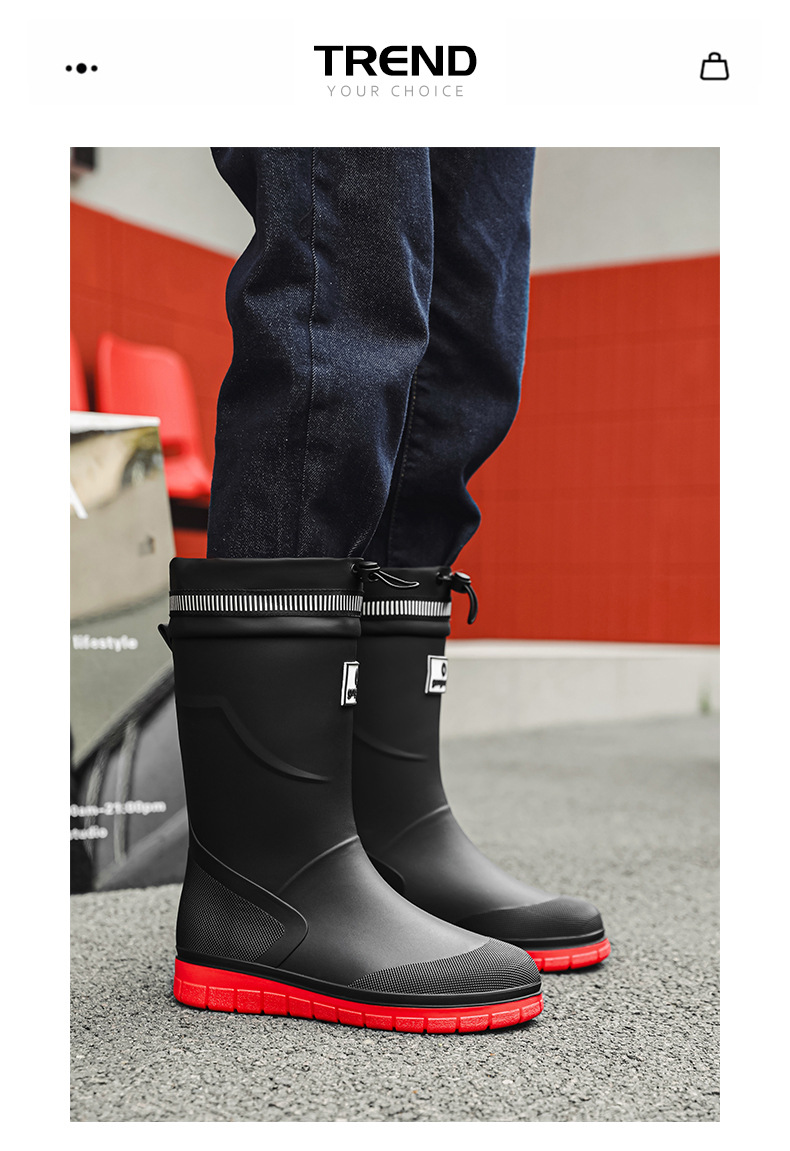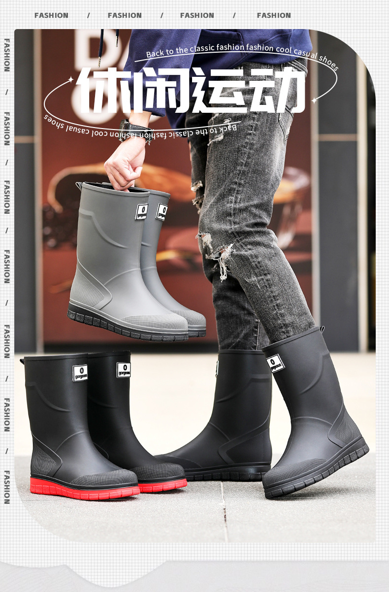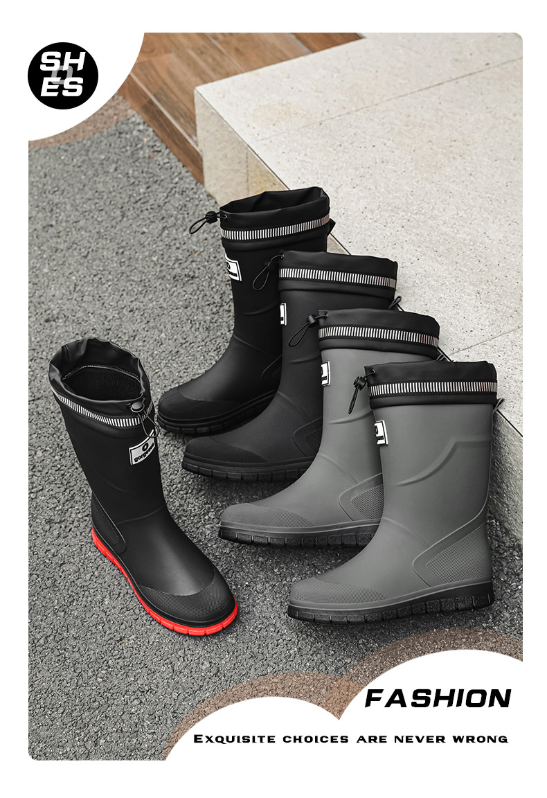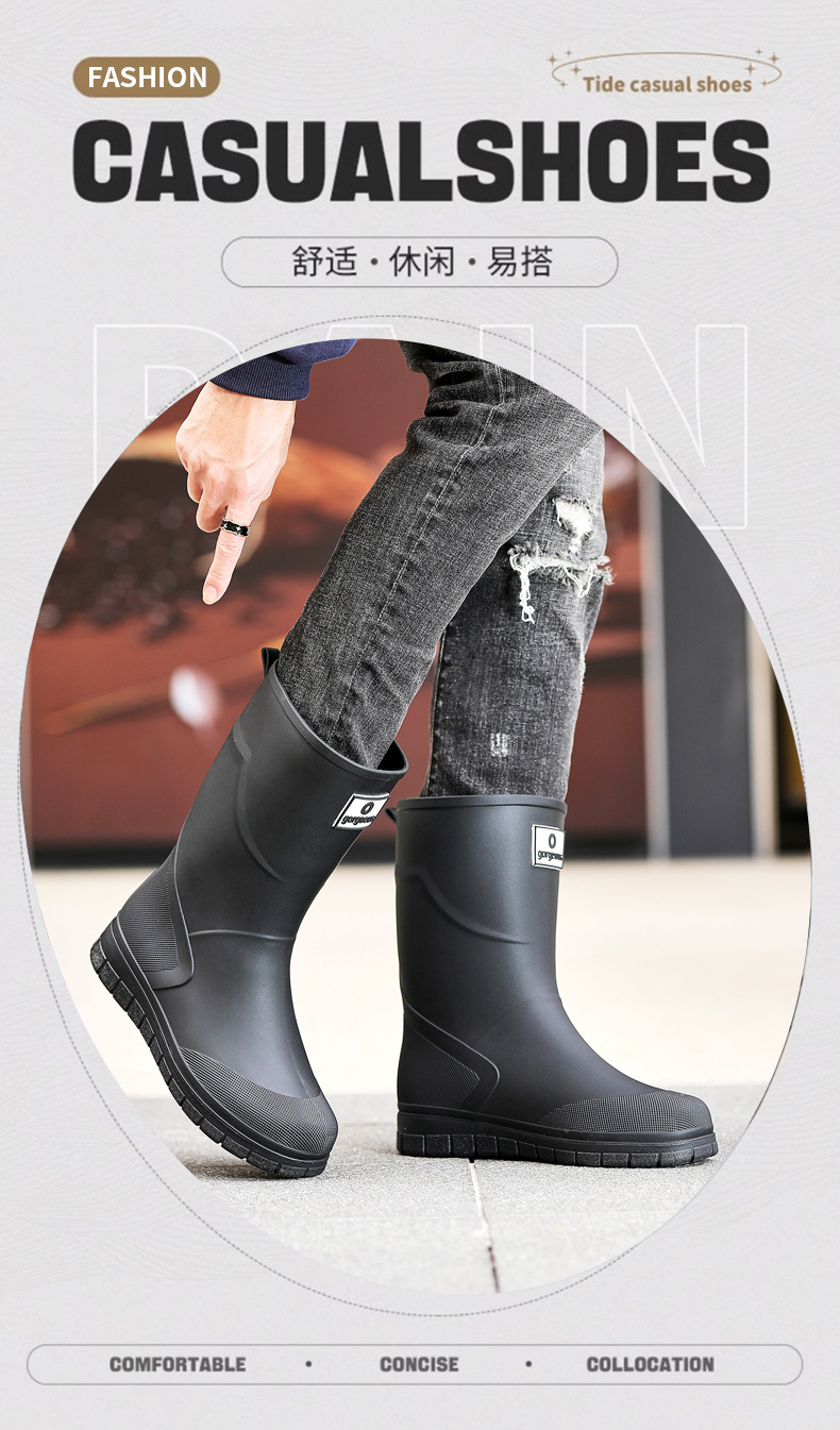 남성용 새로운 방수 종아리 중간 장화, 주방 작업용 미끄럼 방지 내마모성 고무 신발, 워터 슈즈, 슈트 워터 부츠, 내마모성 고무 신발스토어 가기