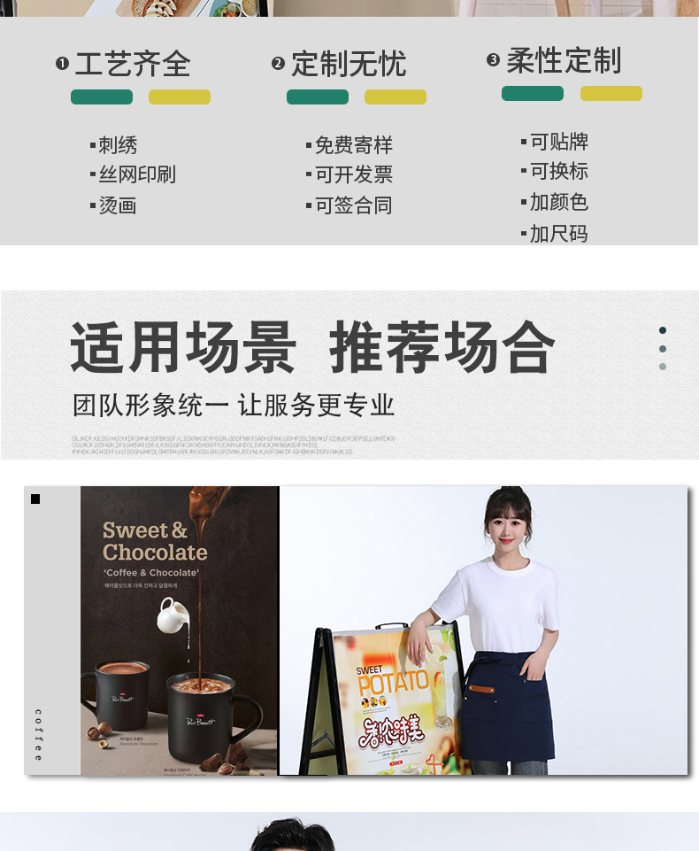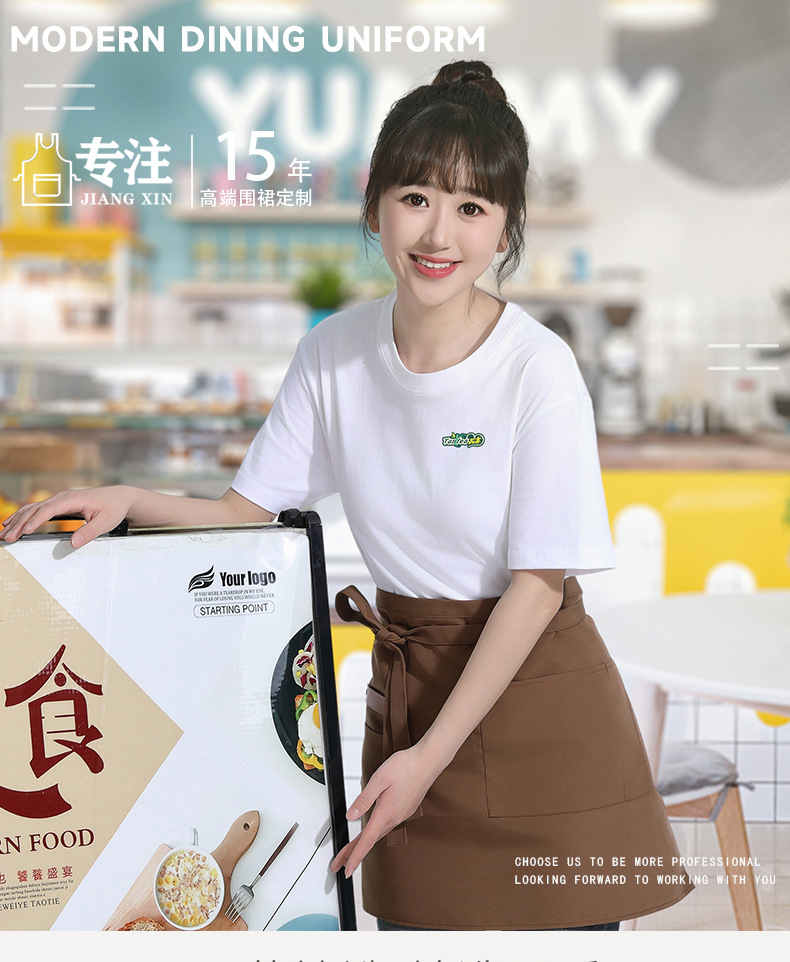 패스트푸드점 짧은 웨이터 반기장 앞치마 셰프 대형 반기장 앞치마 카페 밀크티 가게 캔버스 앞치마
