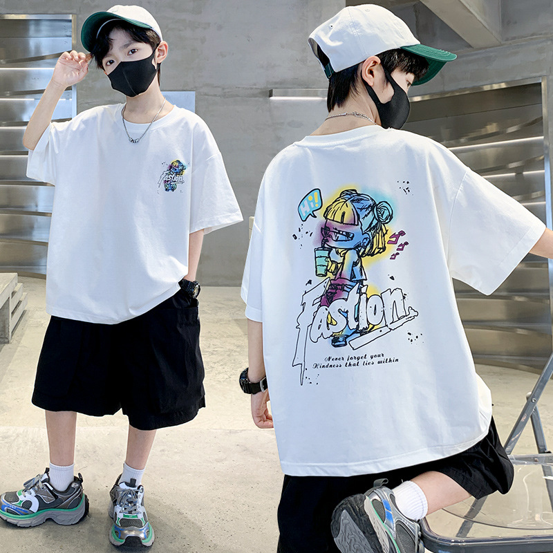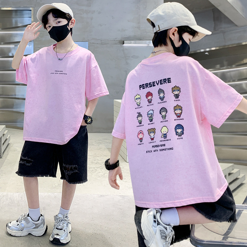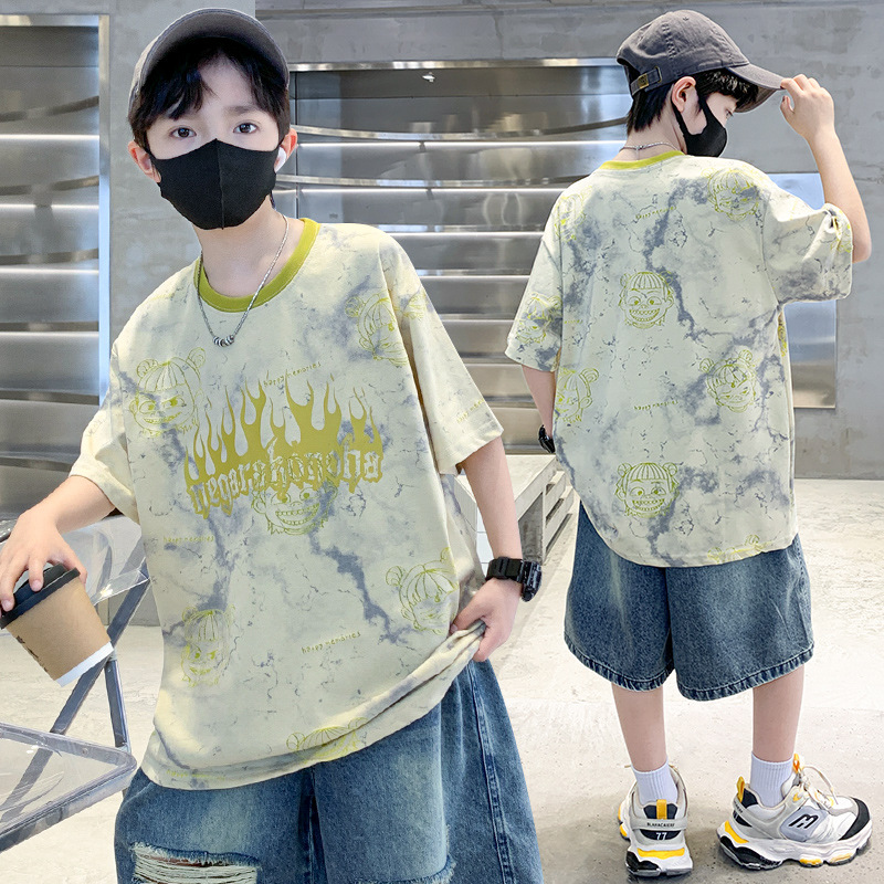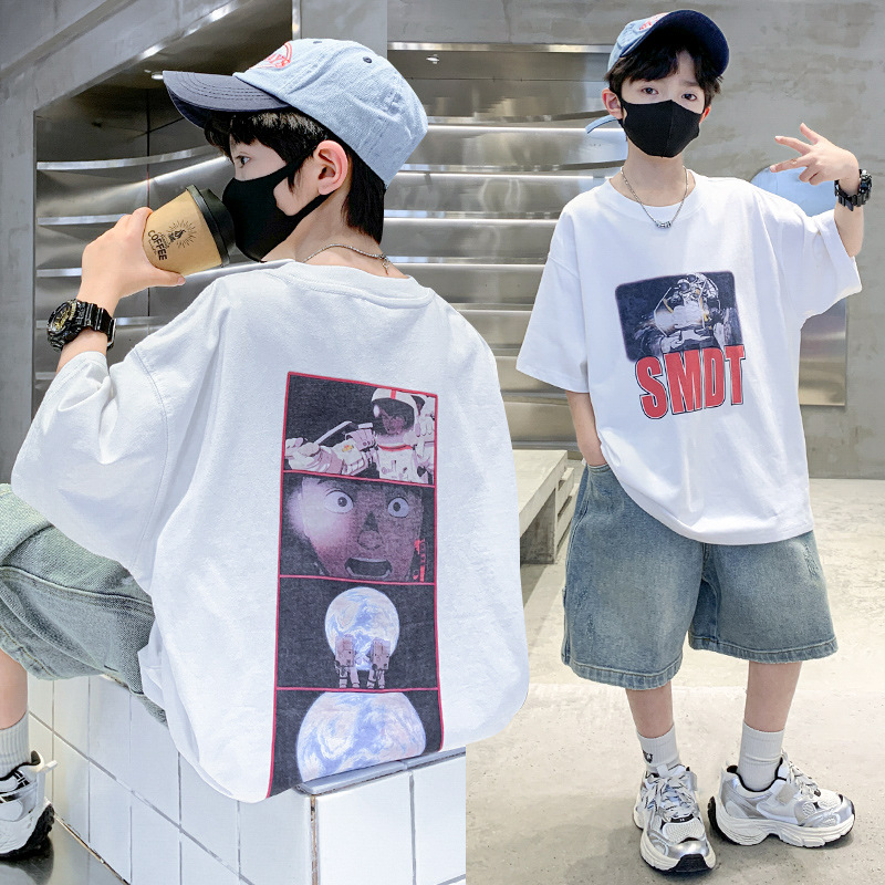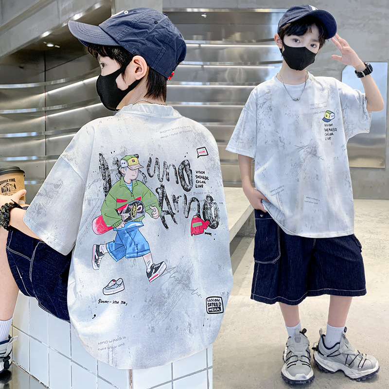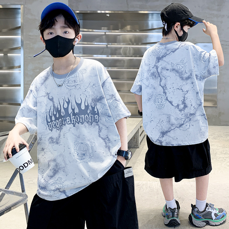 아동 의류 소년 여름 티셔츠 2025 새로운 소년 여름 반팔 어린이 여름 순수 코튼 탑 중대형 어린이 유행 T