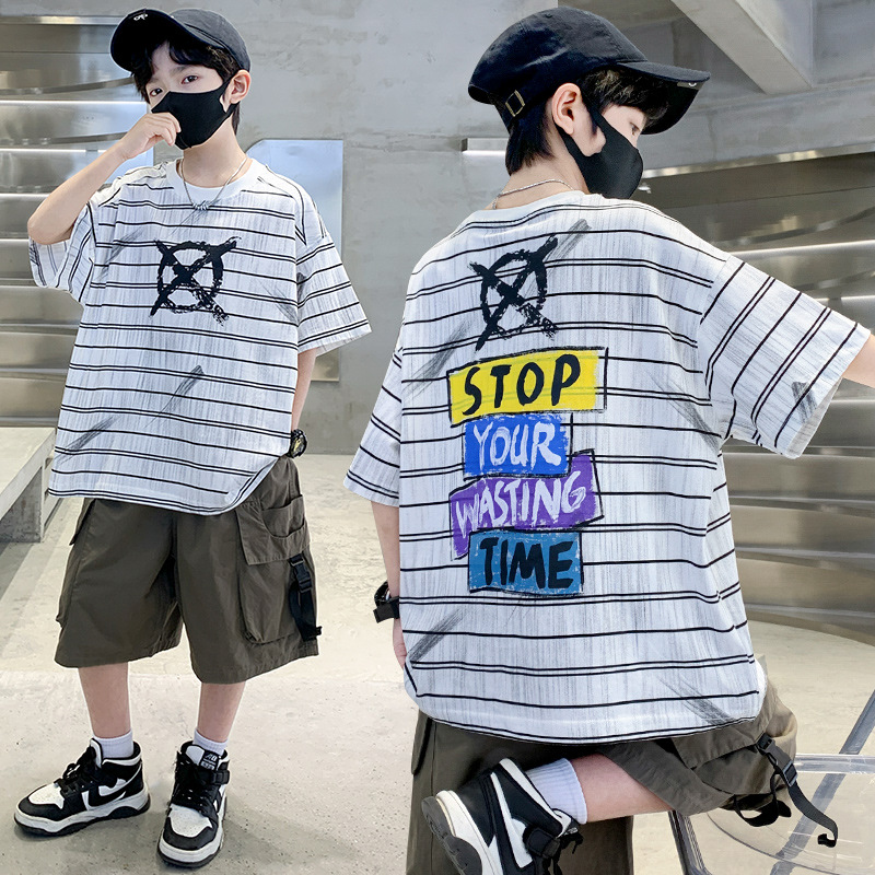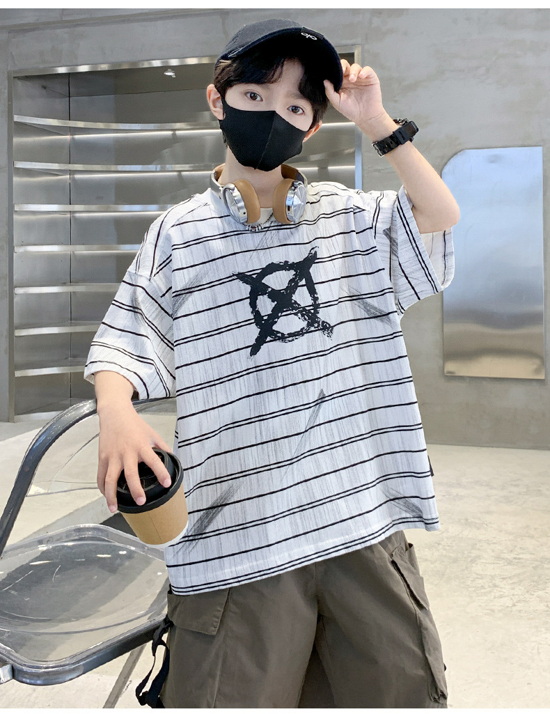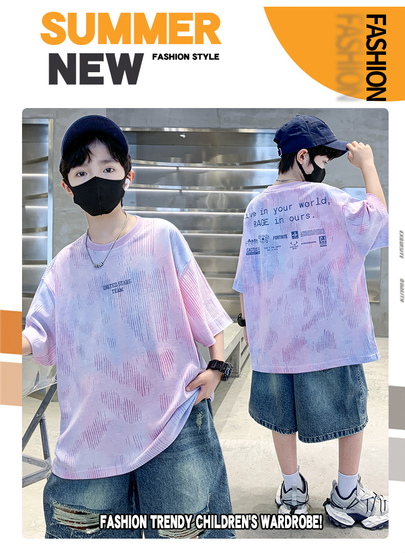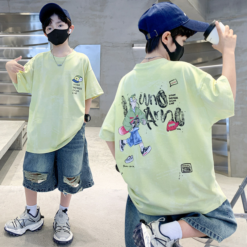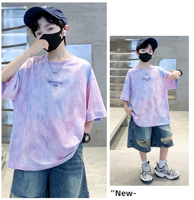 아동 의류 소년 여름 티셔츠 2025 새로운 소년 여름 반팔 어린이 여름 순수 코튼 탑 중대형 어린이 유행 T