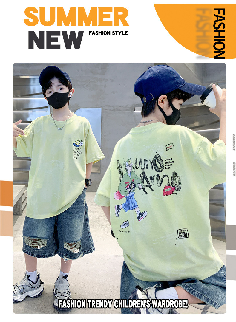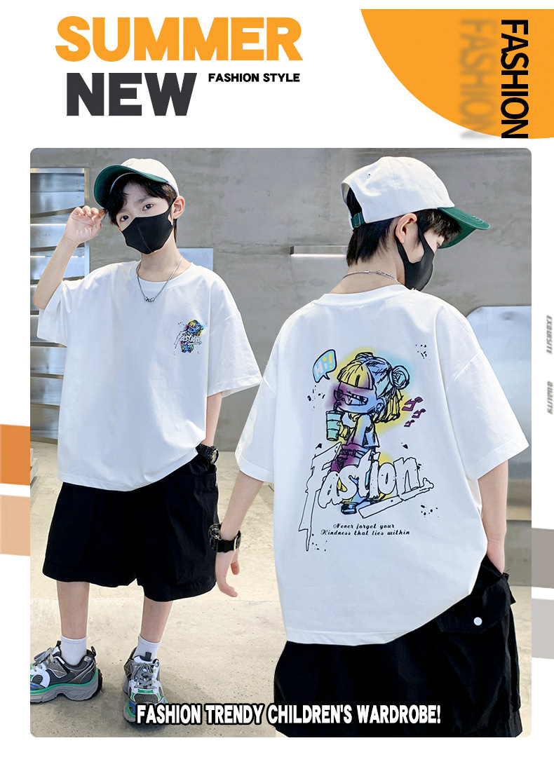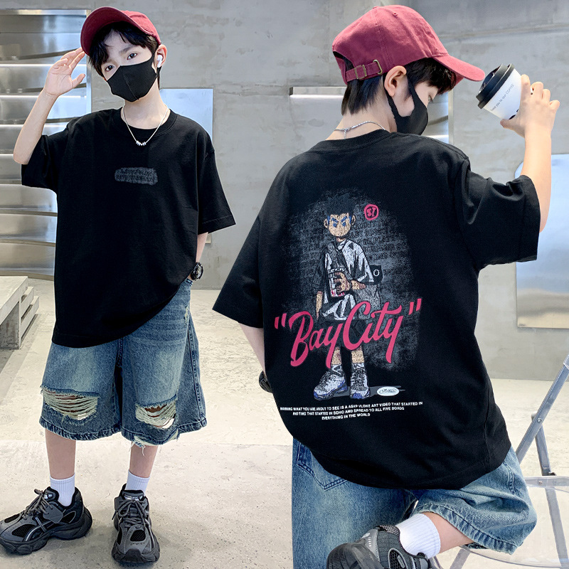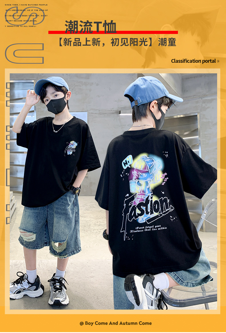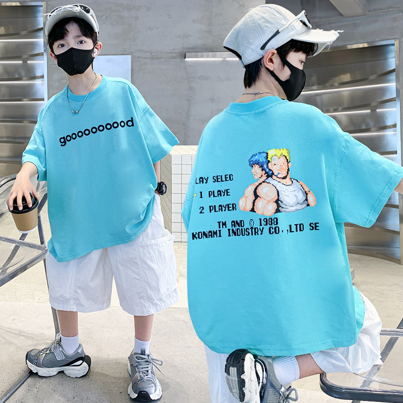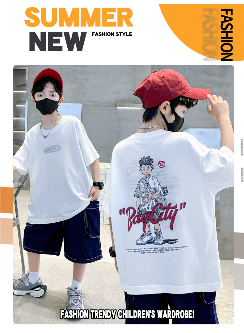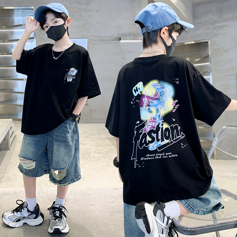 아동 의류 소년 여름 티셔츠 2025 새로운 소년 여름 반팔 어린이 여름 순수 코튼 탑 중대형 어린이 유행 T스토어 가기