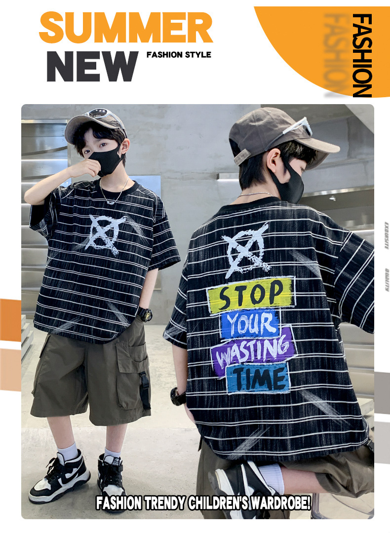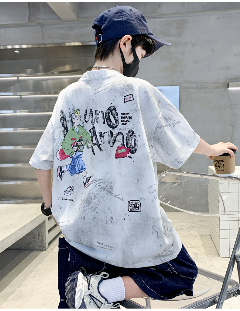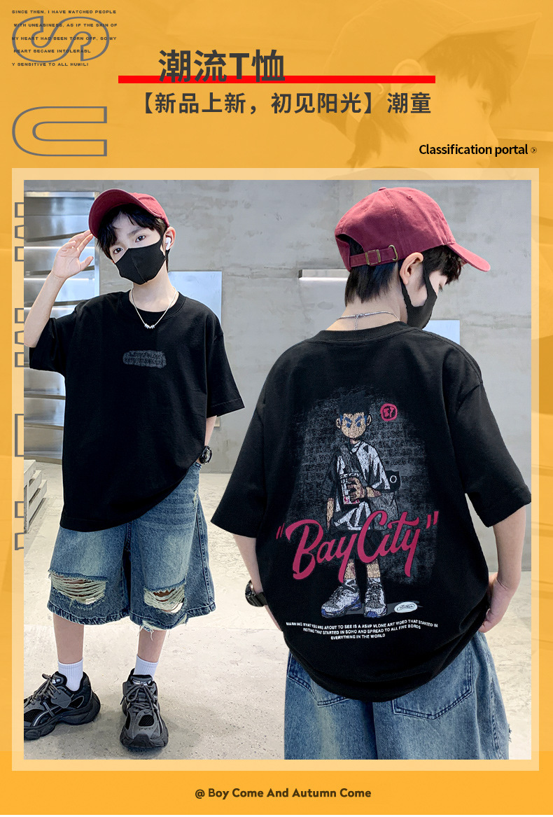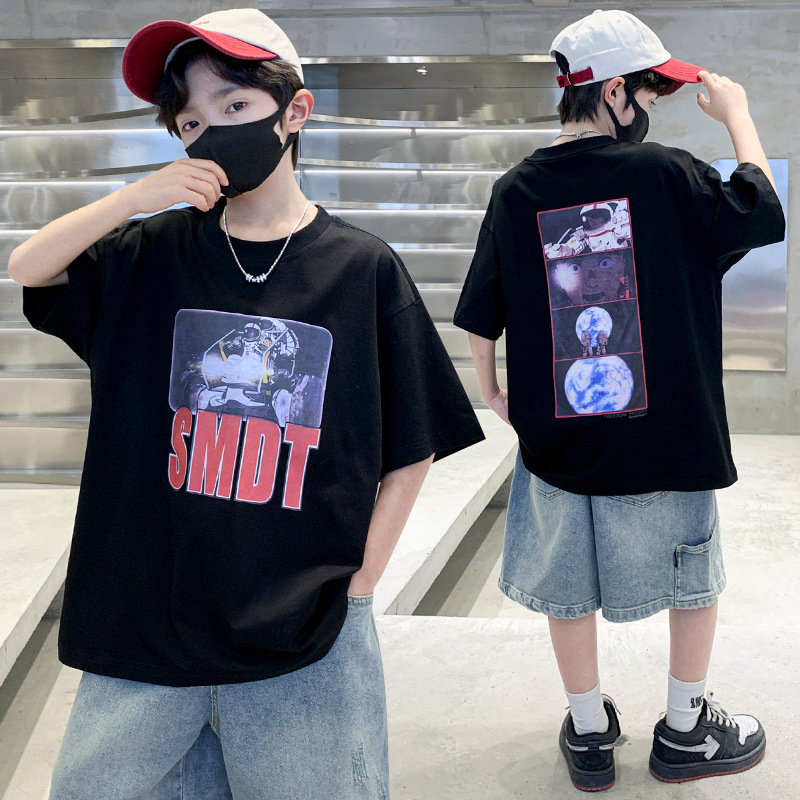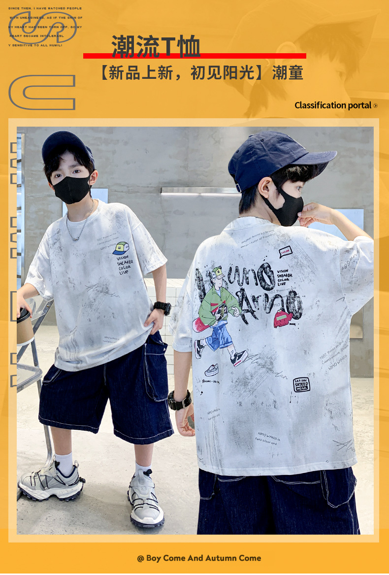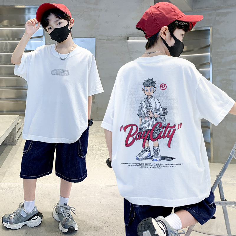 아동 의류 소년 여름 티셔츠 2025 새로운 소년 여름 반팔 어린이 여름 순수 코튼 탑 중대형 어린이 유행 T스토어 가기