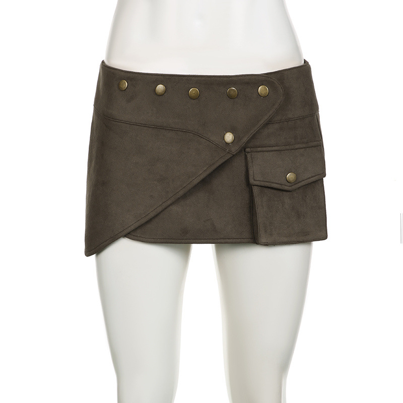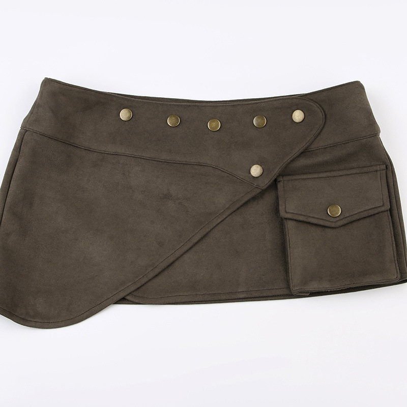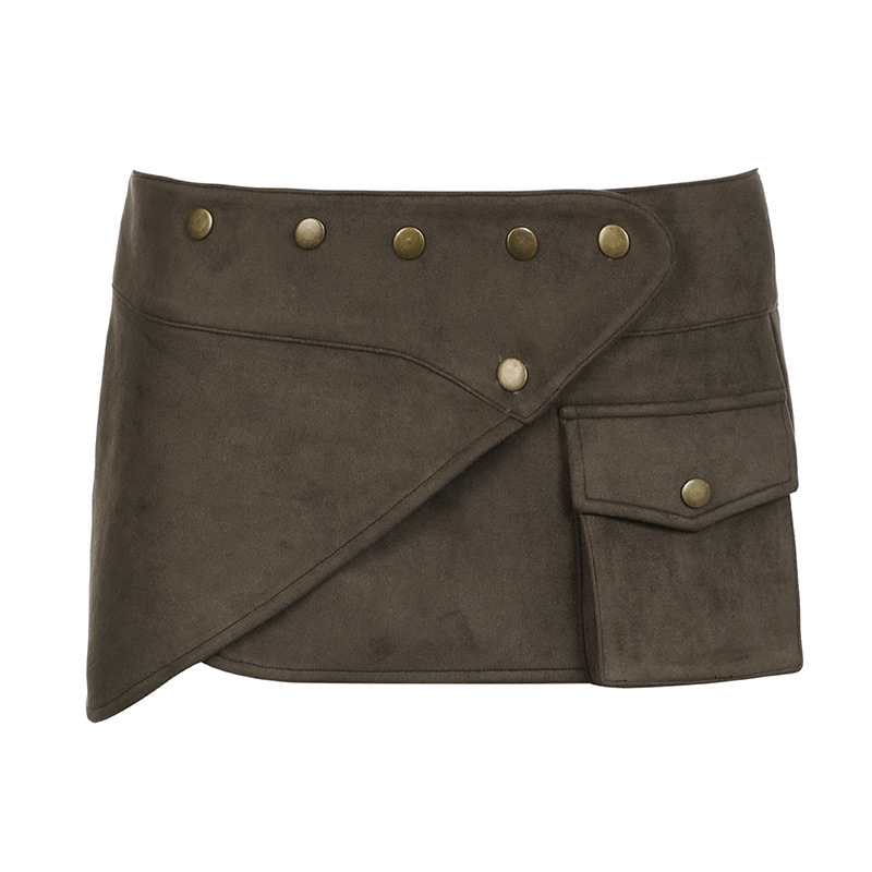 아메리칸 스타일 슈퍼 핫 섹시 스웨이드 리벳 미니 스커트 핫 소녀 스트리트 스타일 맞춤형 포켓 불규칙한 미니 작업복 스커트