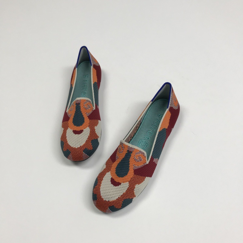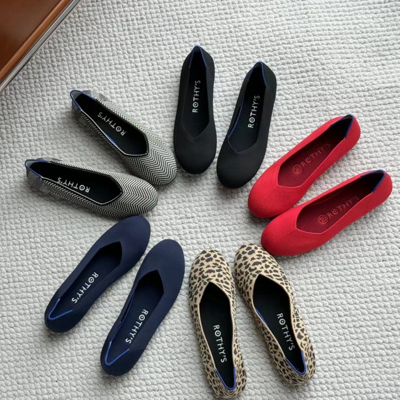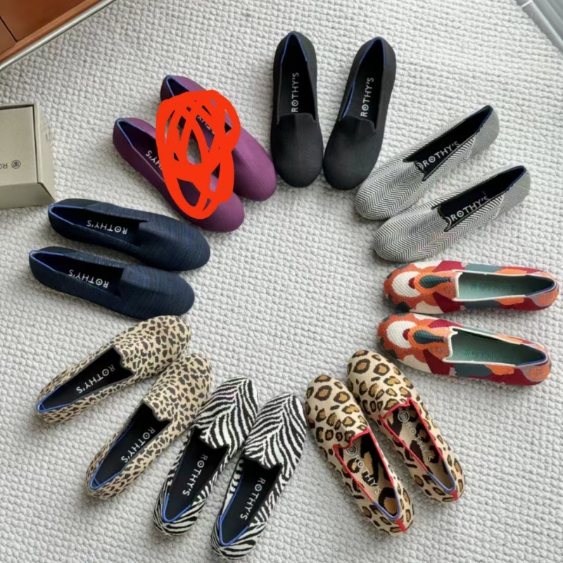 Princess R 니트 고탄성 플라이 라인 둥근 발가락 여성 신발 플랫 캐주얼 로퍼 슬립 온 편안한 신발스토어 가기
