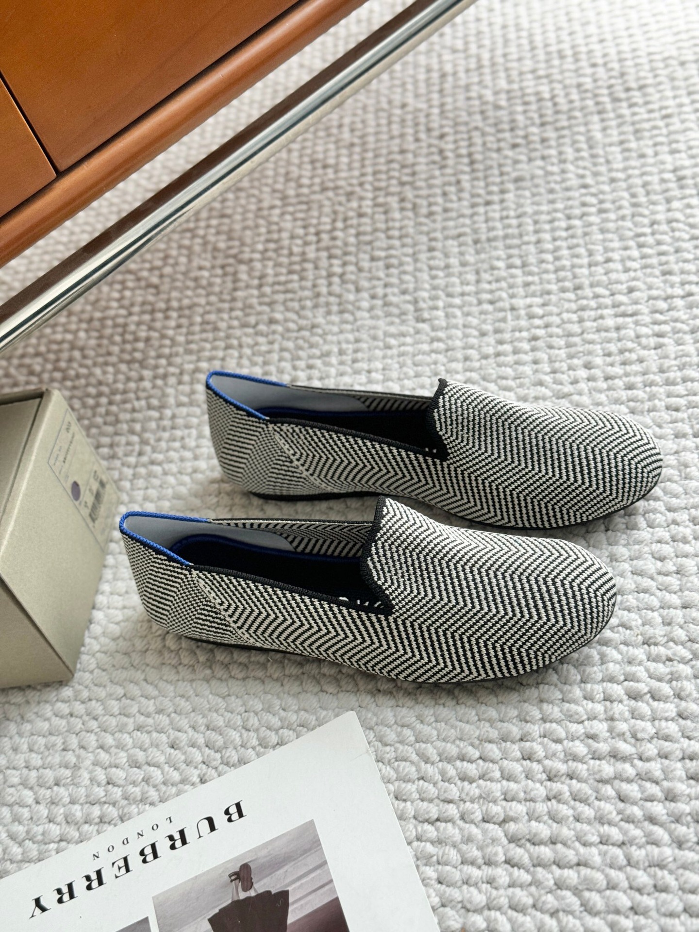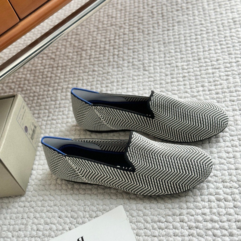 Princess R 니트 고탄성 플라이 라인 둥근 발가락 여성 신발 플랫 캐주얼 로퍼 슬립 온 편안한 신발