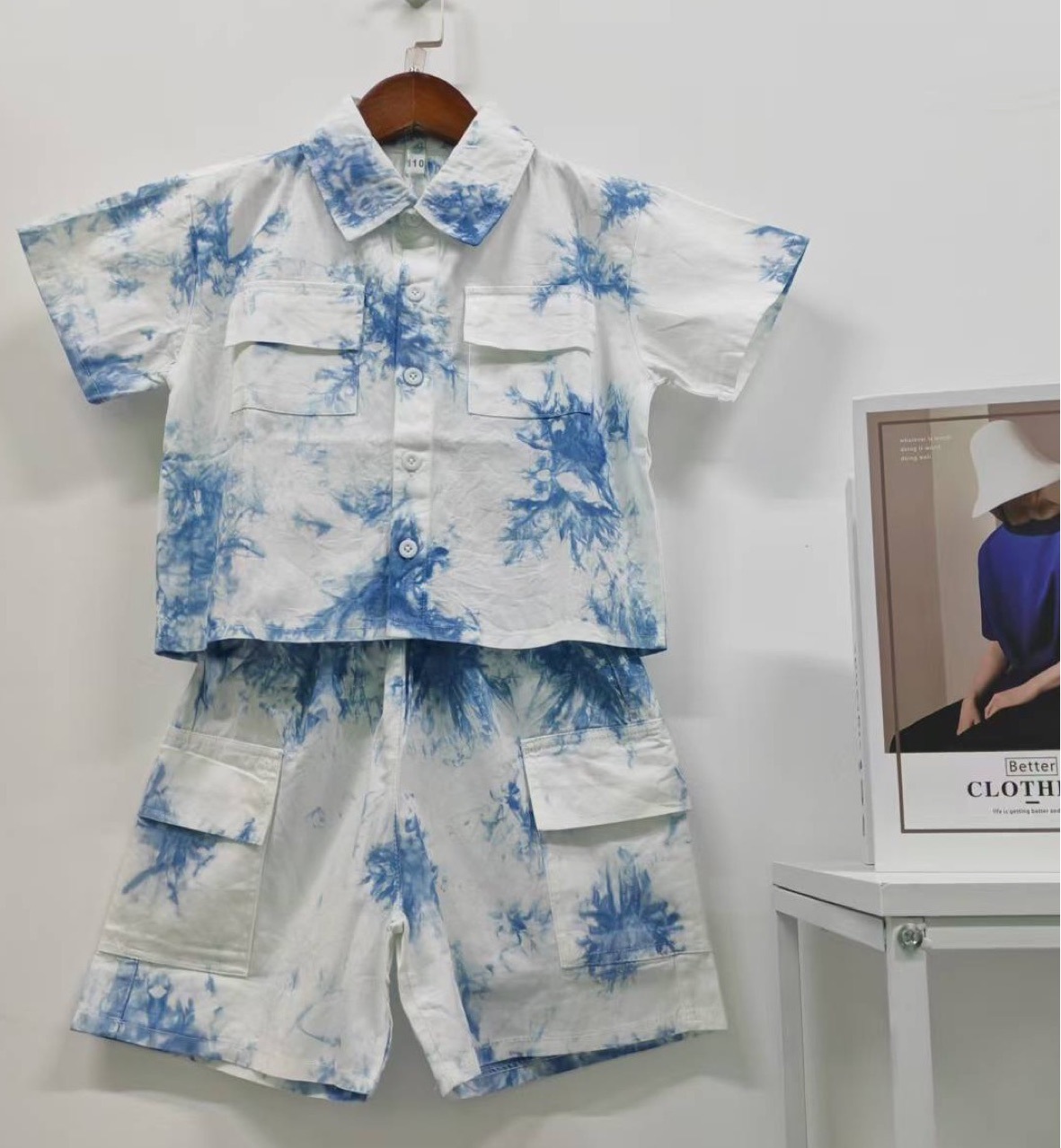 타이 염색 코튼 여름 민족 스타일 수제 타이 염색 소년 셔츠 큰 주머니 슈트 통기성과 편안한 캐주얼스토어 가기