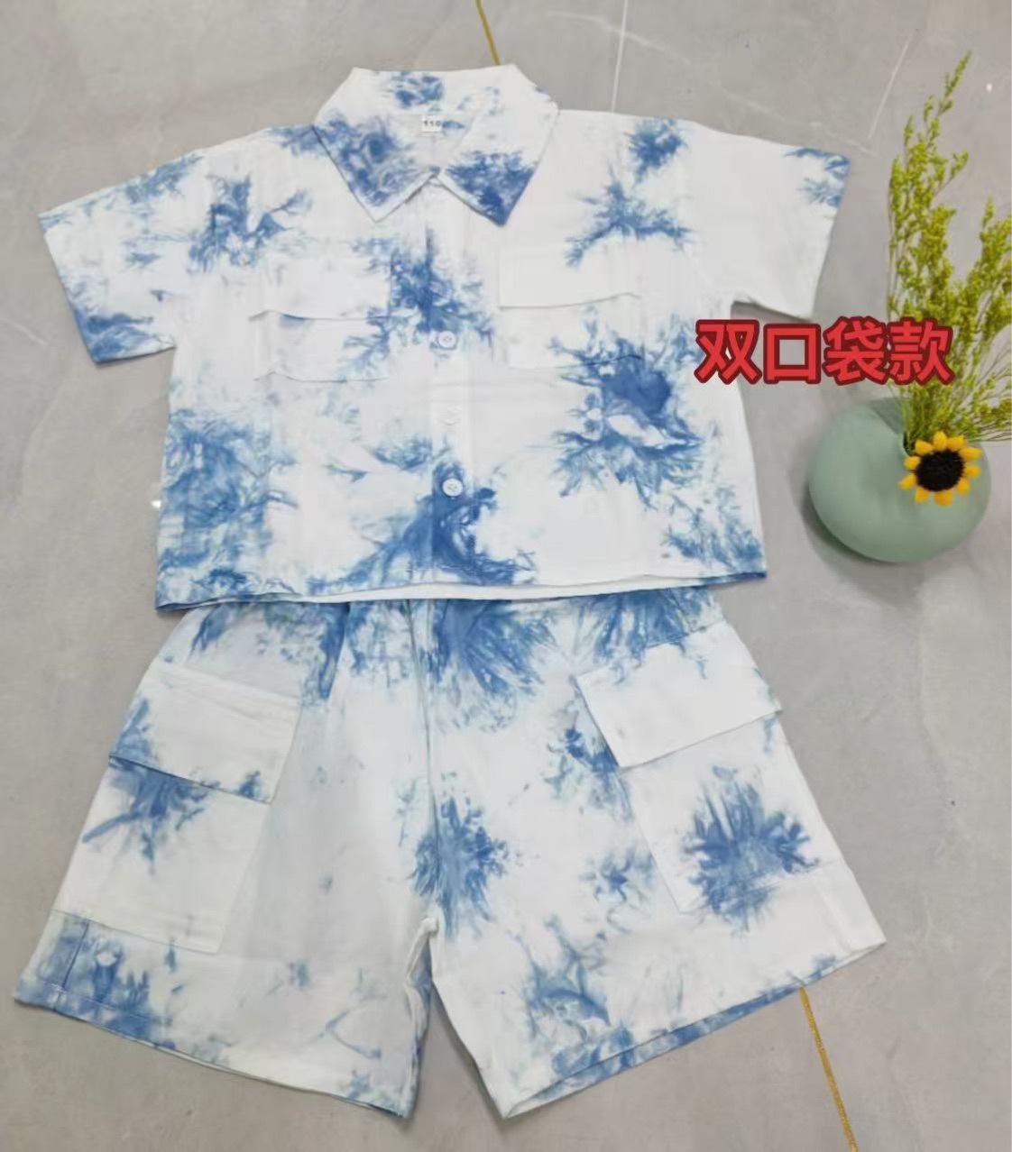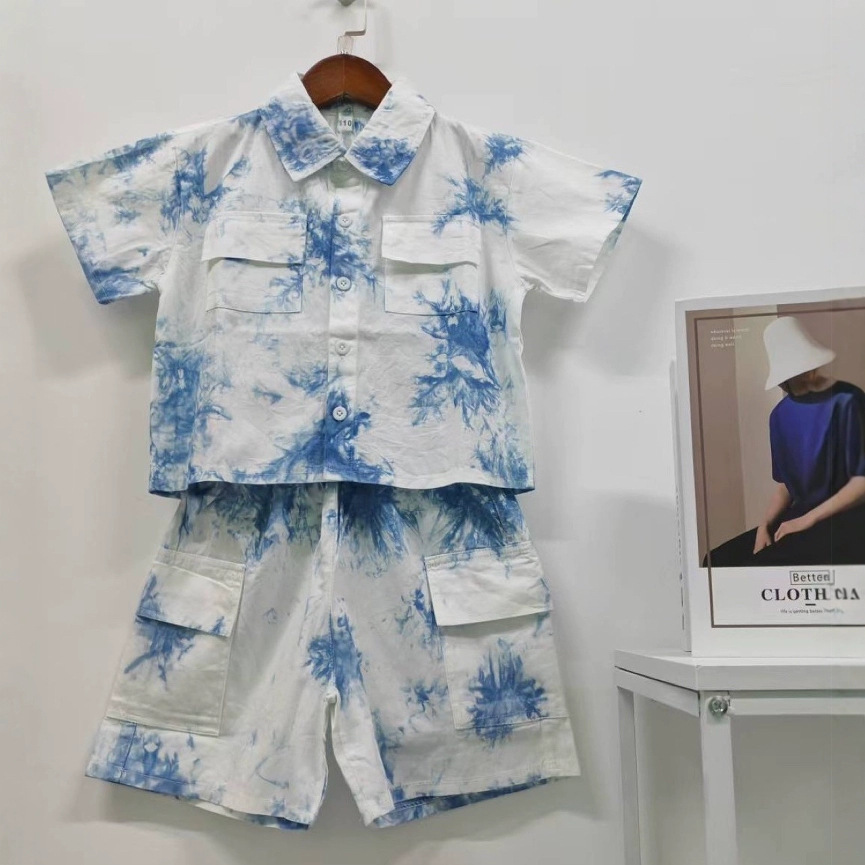 타이 염색 코튼 여름 민족 스타일 수제 타이 염색 소년 셔츠 큰 주머니 슈트 통기성과 편안한 캐주얼
