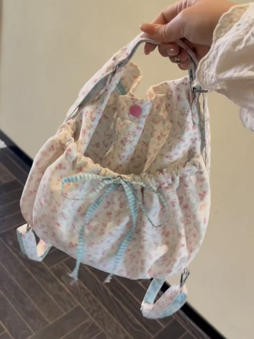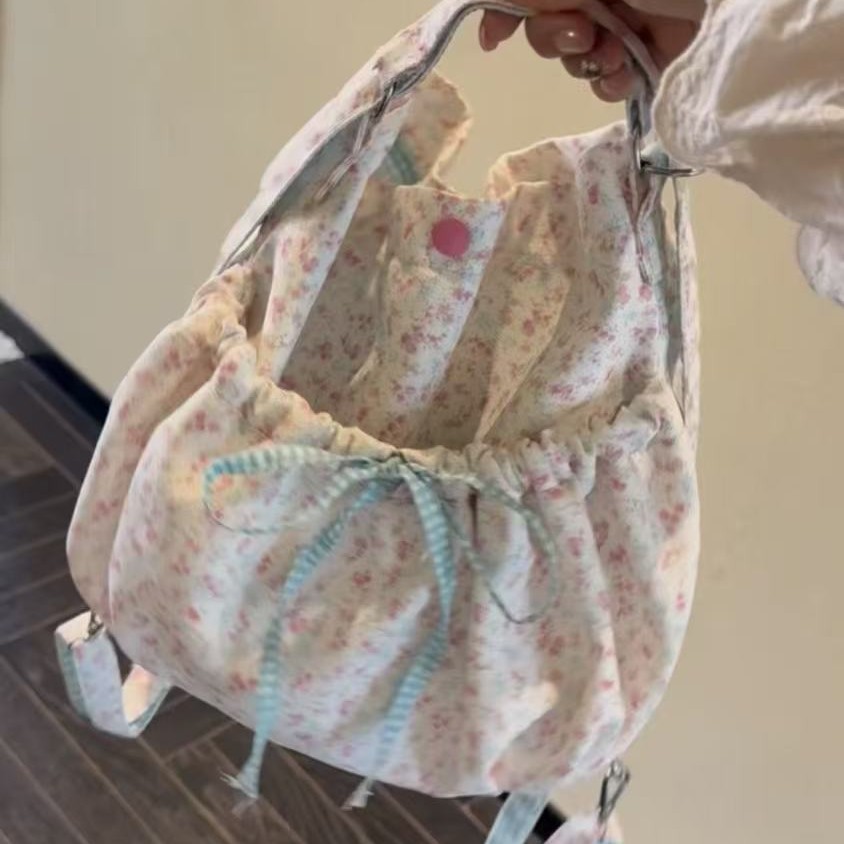 봄과 여름 꽃 새로운 귀여운 주름 활 배낭 어깨 가방 크로스 바디 가방 다기능 여성 가방 통근스토어 가기