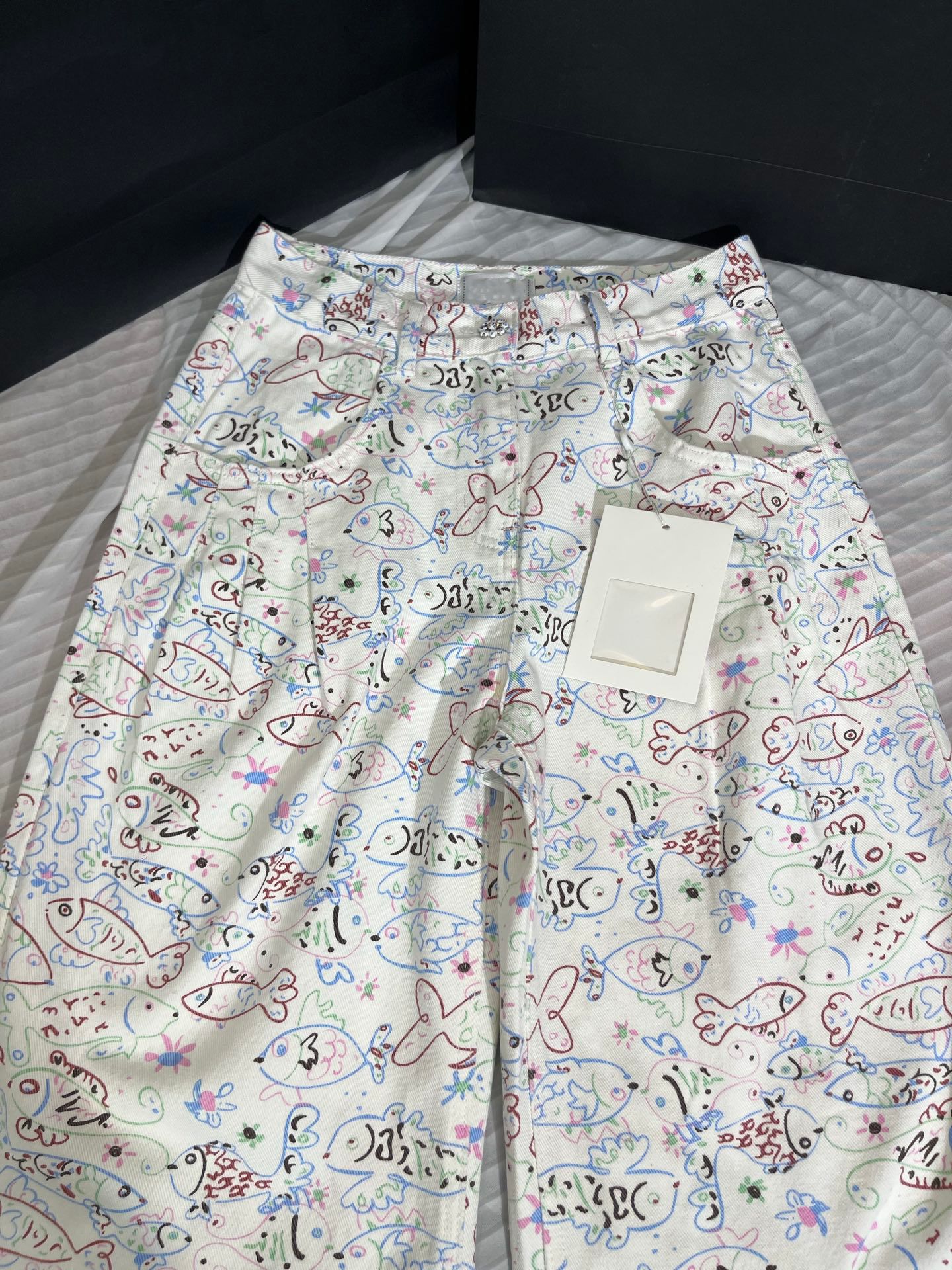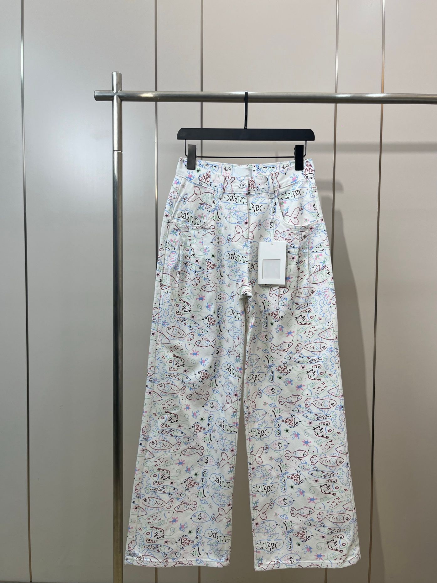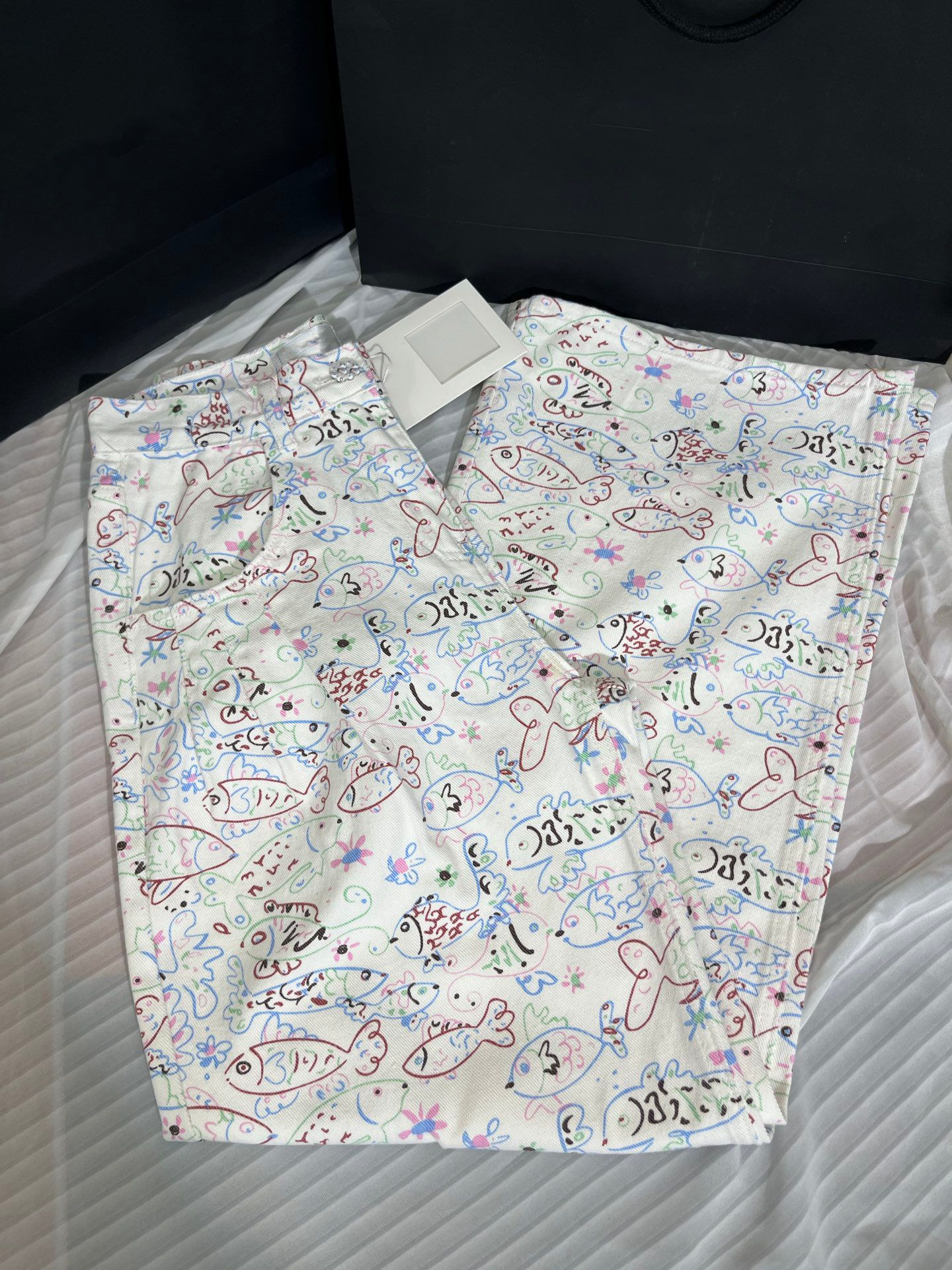 Xiaoxiang 25 봄 신제품 Nanyou 고급 감각 낙서 인쇄 멀티 피쉬 하이 웨이스트 스트레이트 여성 청바지스토어 가기