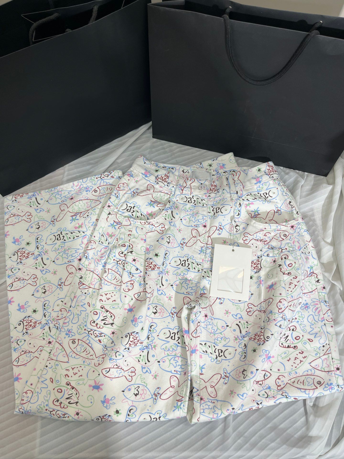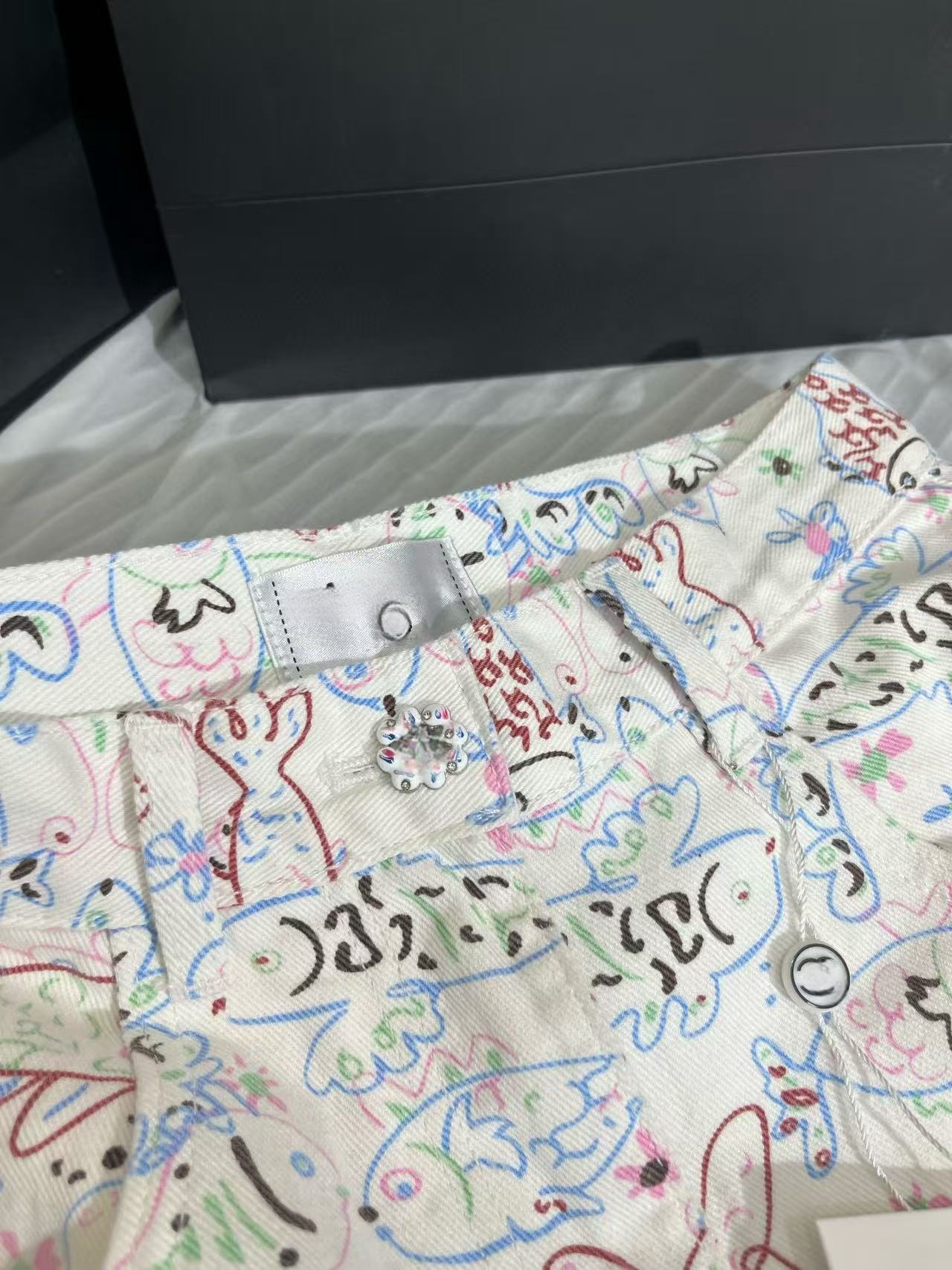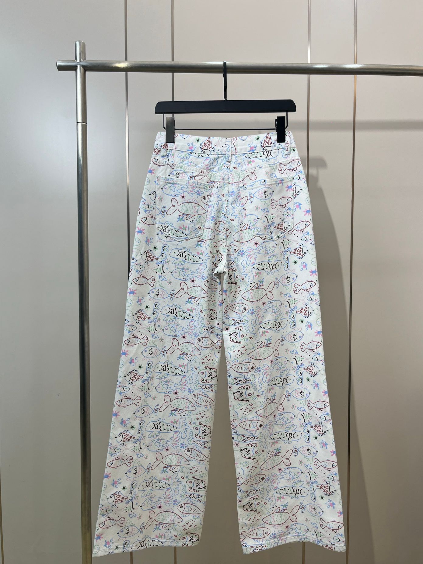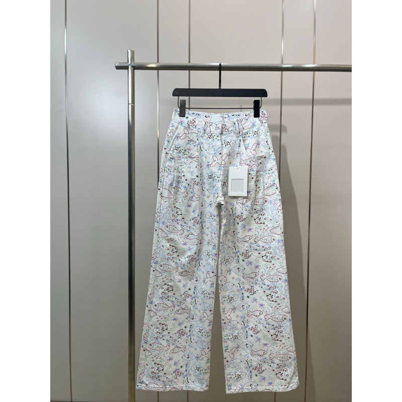 Xiaoxiang 25 봄 신제품 Nanyou 고급 감각 낙서 인쇄 멀티 피쉬 하이 웨이스트 스트레이트 여성 청바지스토어 가기