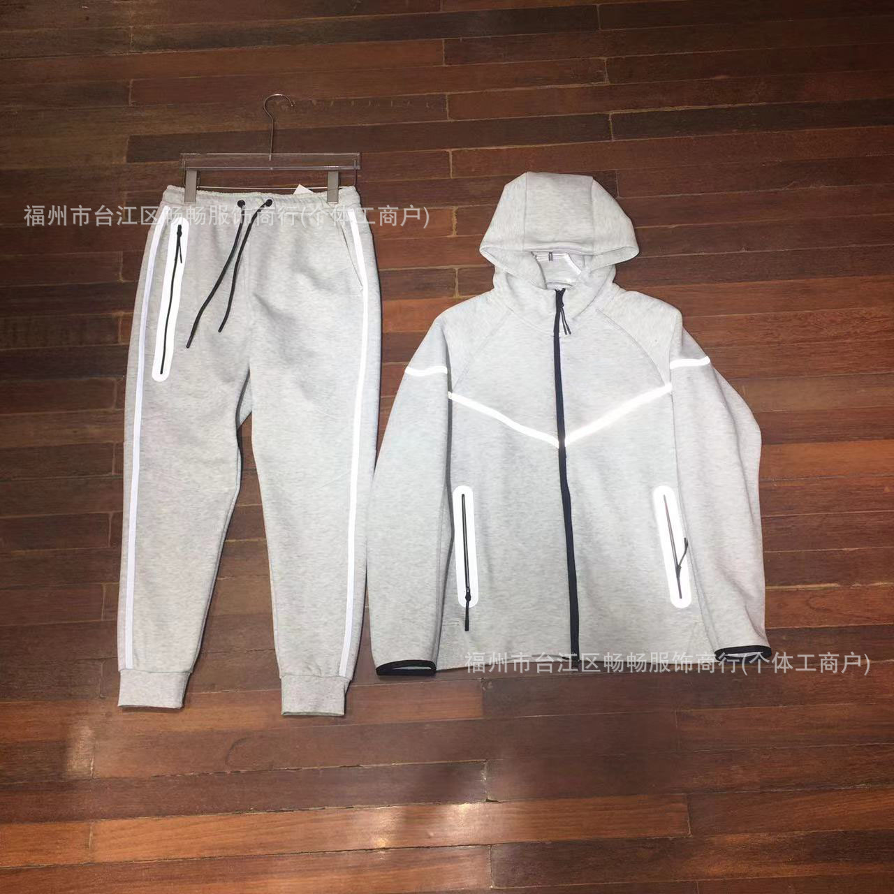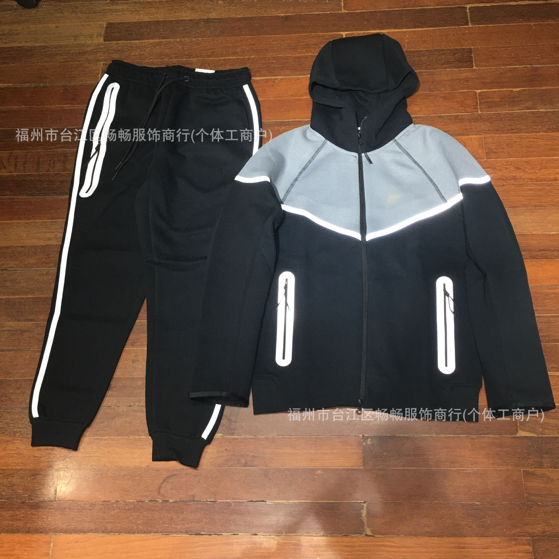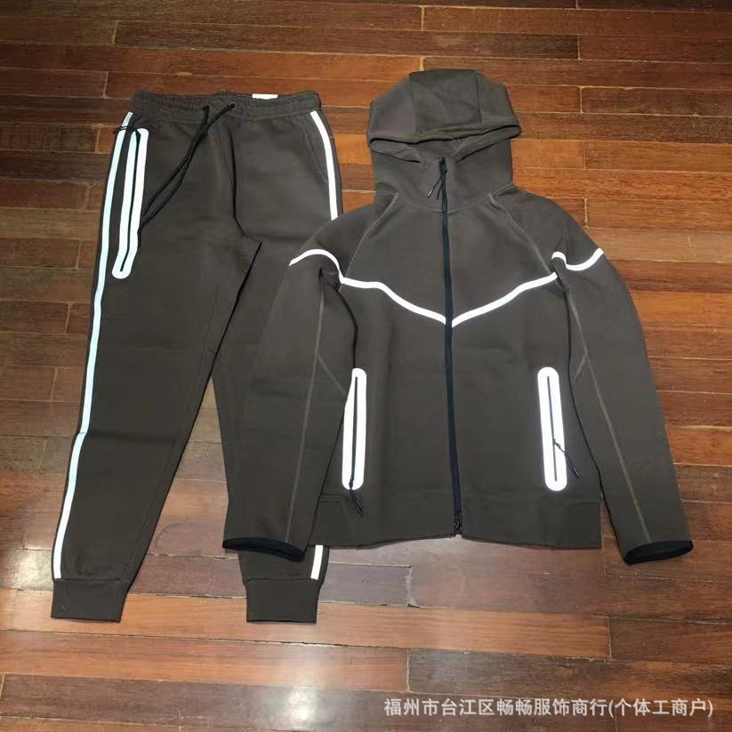 봄과 가을 2025 남자 캐주얼 스포츠 반사 스트립 코튼 후드 자켓 및 운동복 754 및 762 세트스토어 가기