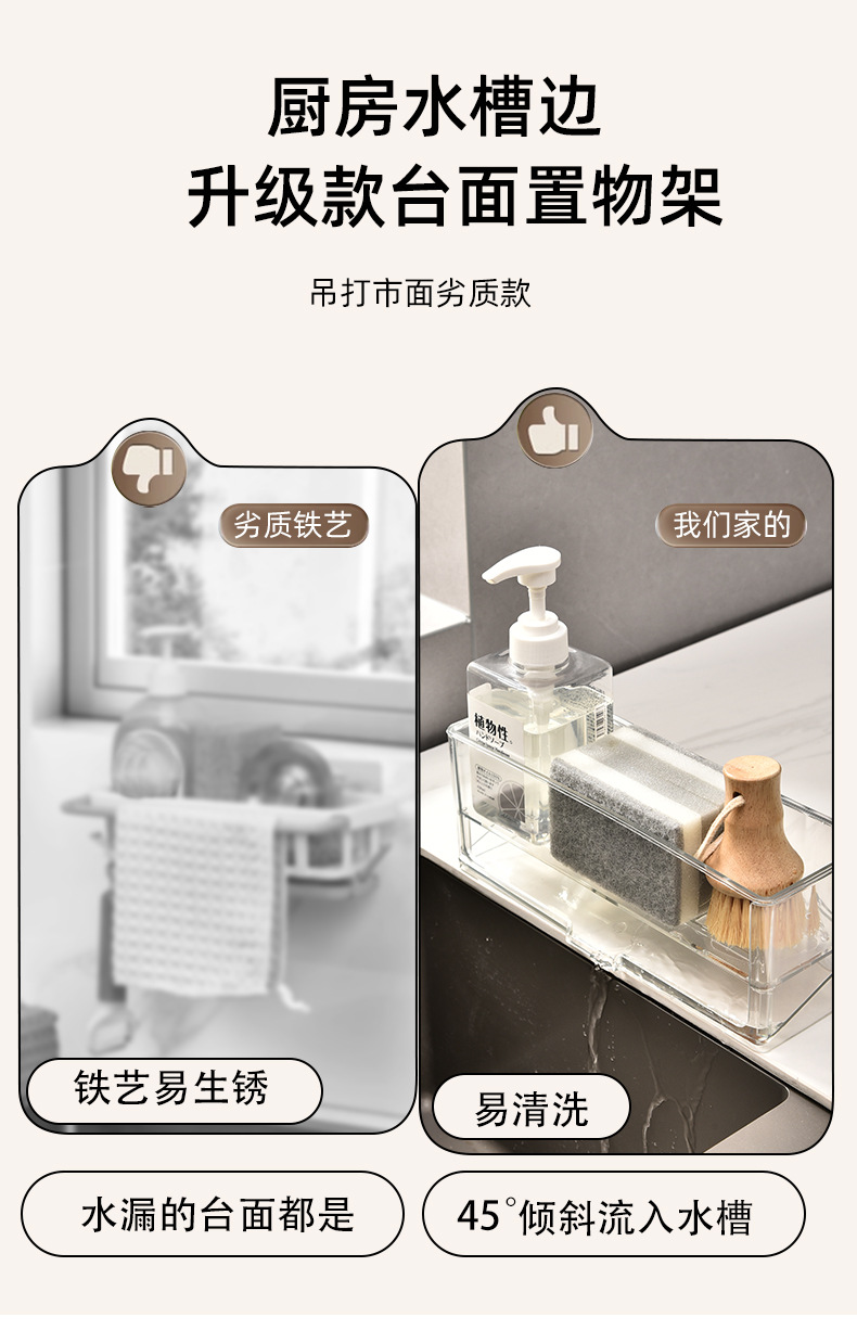 주방 싱크대 배수구 랙 조리대 플라스틱 확장 좁은 가장자리 보관 랙 식기 세척 스폰지 걸레 주방 세제 보관 랙