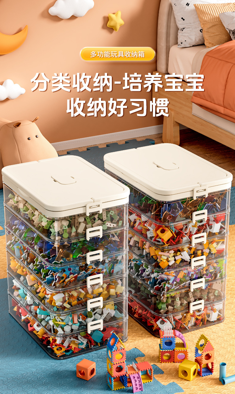 빌딩 블록 보관 상자, 작은 입자 부품, 다층 칸 분류 보관 상자, 어린이 장난감 조립 및 정리 상자