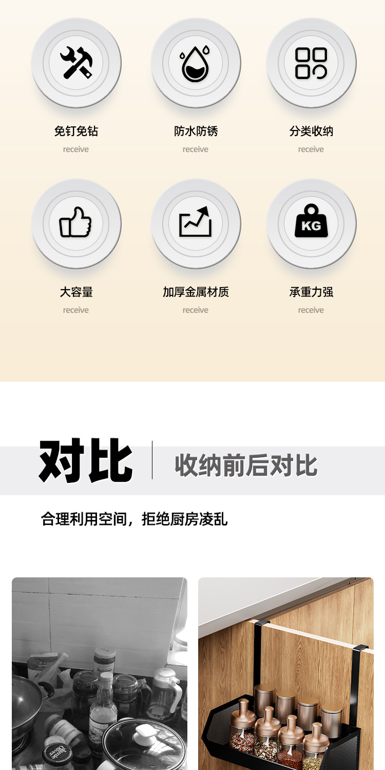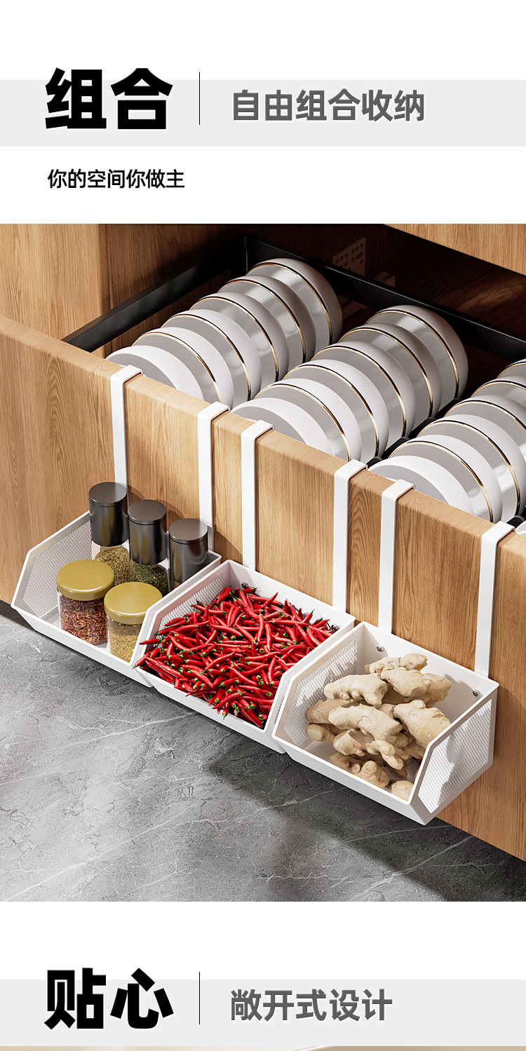 주방 펀치 없는 캐비닛 도어 수납 선반, 양파, 생강, 마늘 수납 선반 상자, 문 안쪽에 걸 수 있는 작은 바구니, 외부 걸이 바구니 프레임