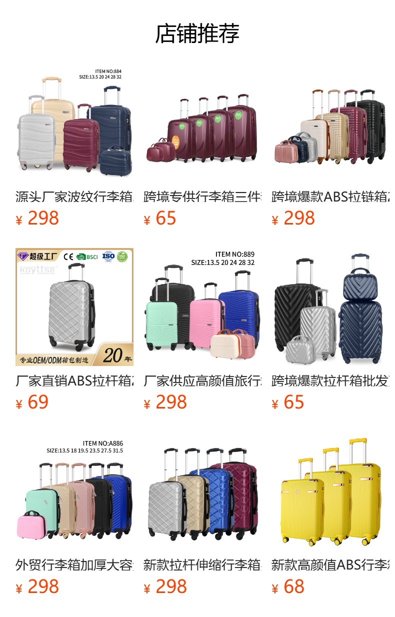 원산지 제조업체 ABS 트롤리 캐리어 4종 세트, 해외 수출용 여행 가방, 트롤리 캐리어, 회전 바퀴, 도난 방지 기내용 캐리어, 도매스토어 가기