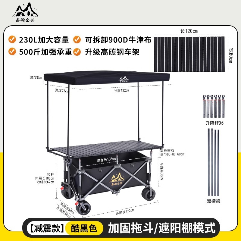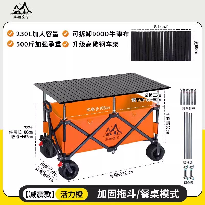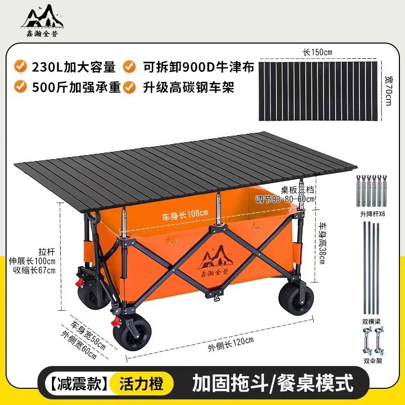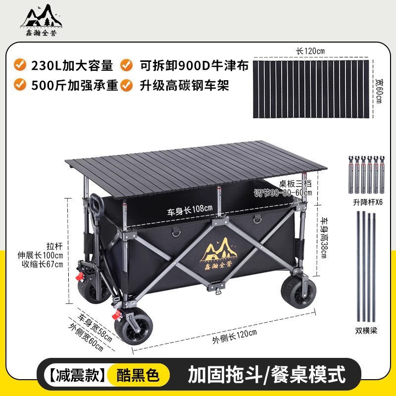 야외 캠핑 카트, 휴대용 접이식 리프팅 테이블, 노점 야시장 트롤리, 견인 트레일러