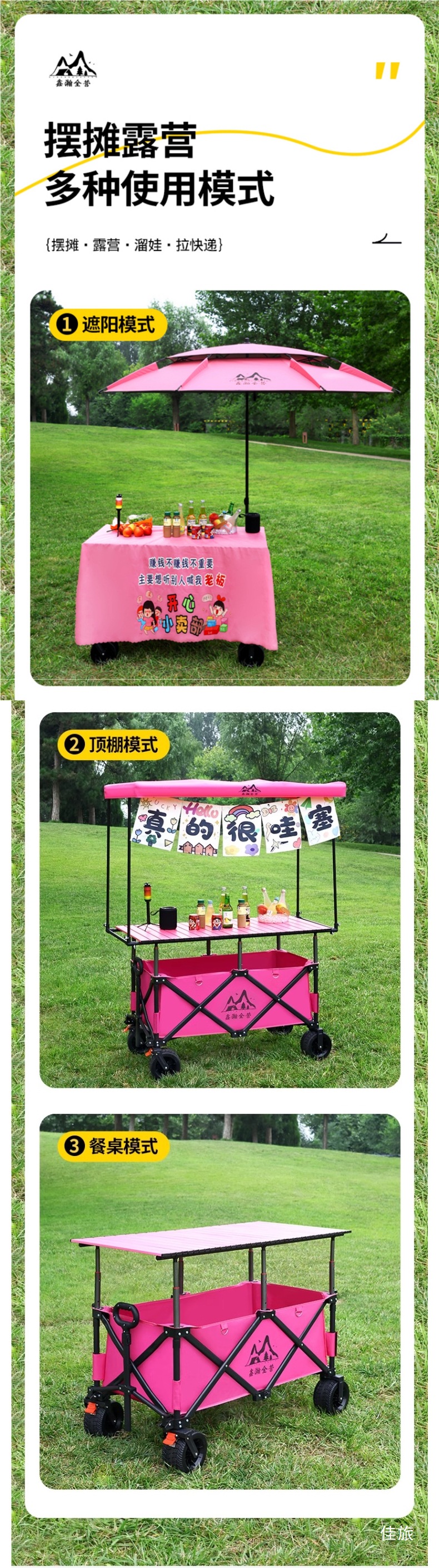 • 새로운 분홍색 자동차 + 120*60 리프팅 테이블 + 대형 우산 2.4m개