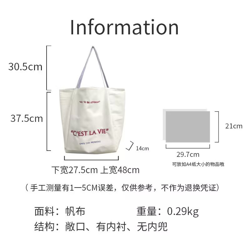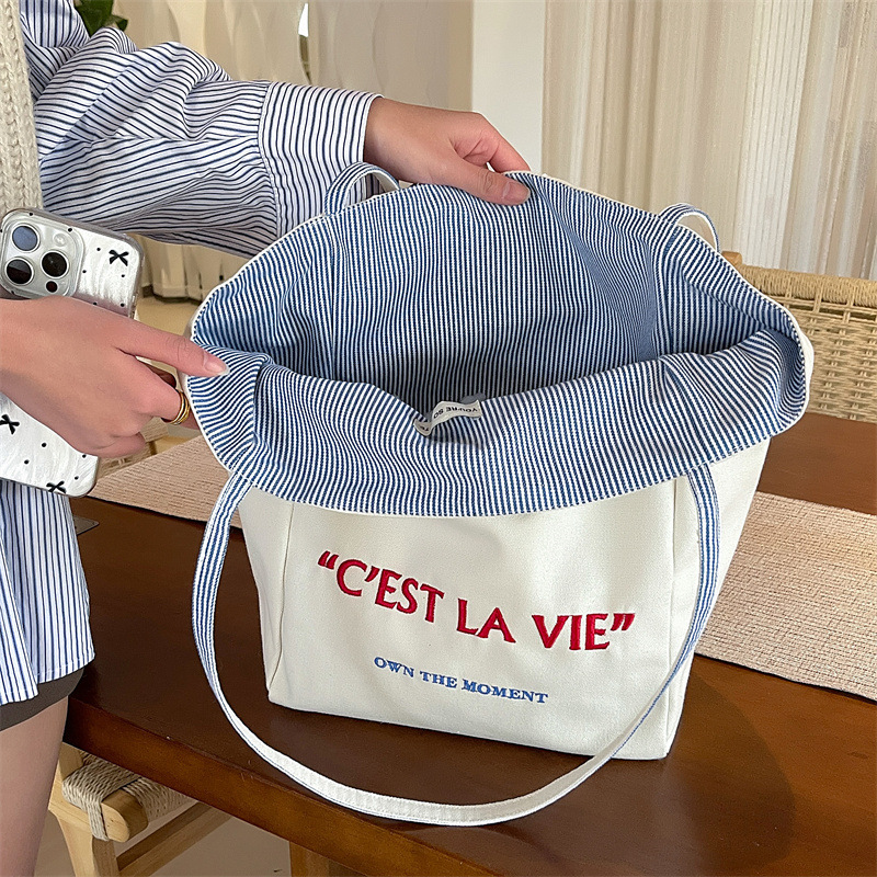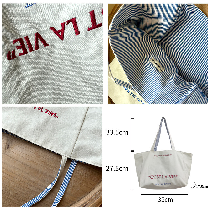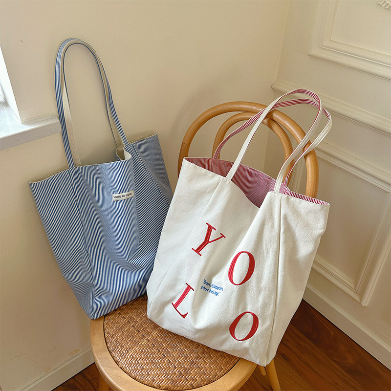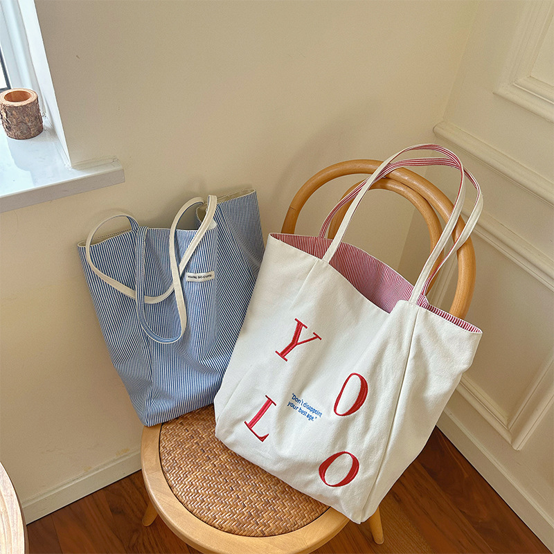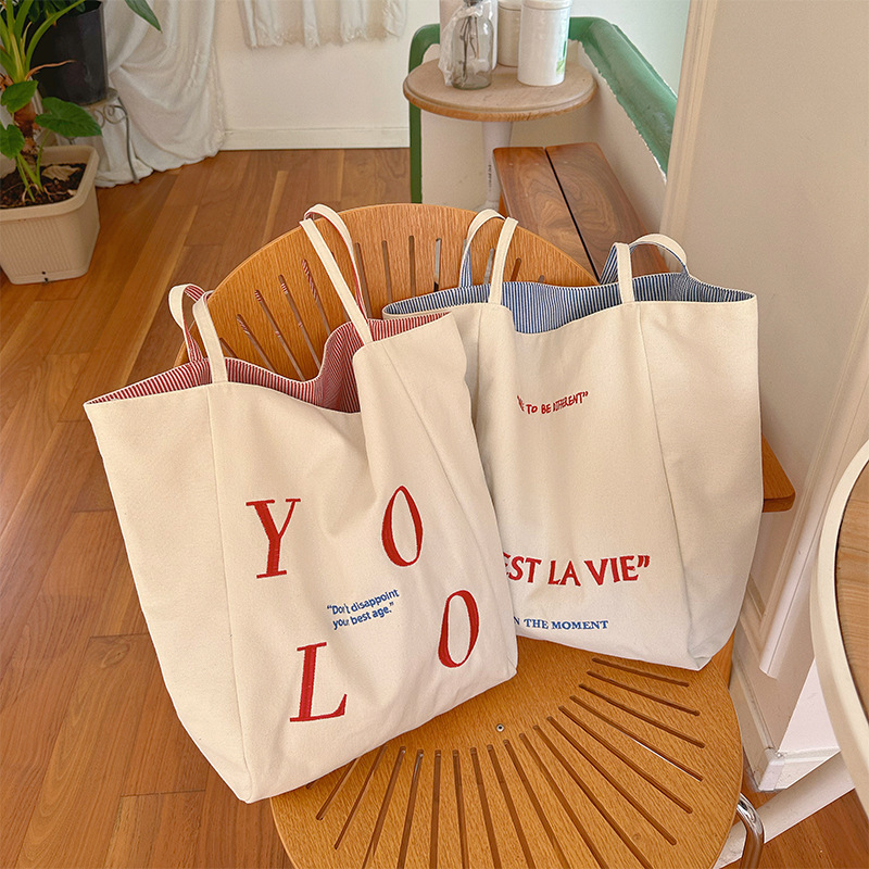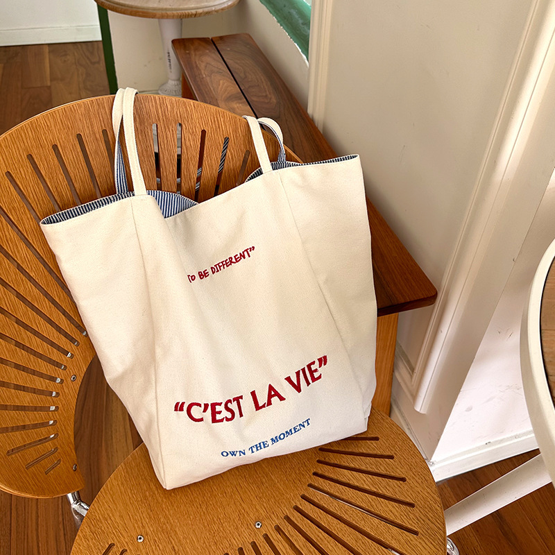 새로운 자수 문자 패션 캔버스 가방 양면 여성용 숄더백 캐주얼 대용량 통근 토트 백