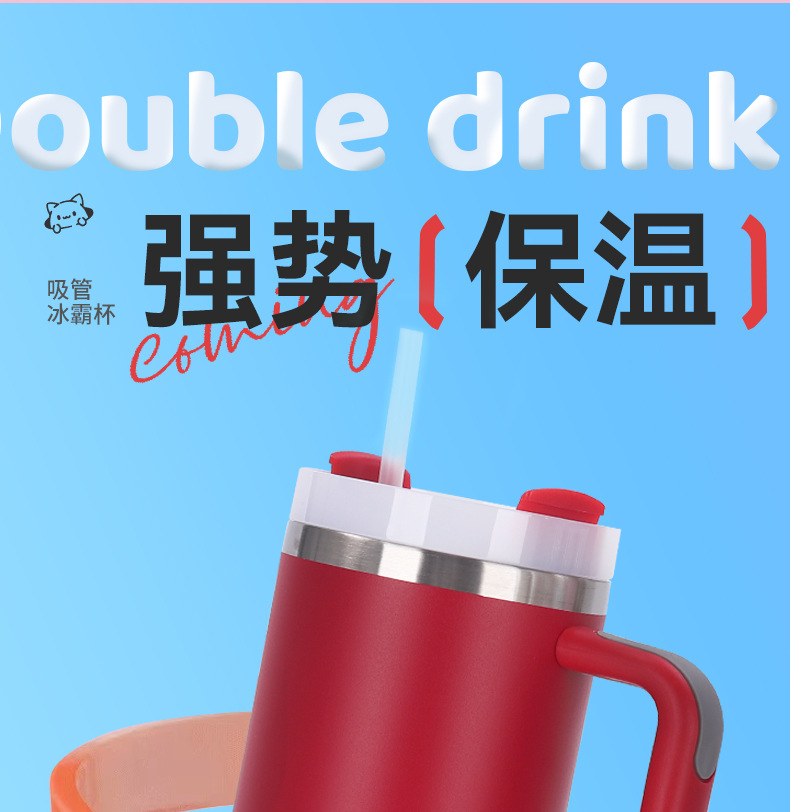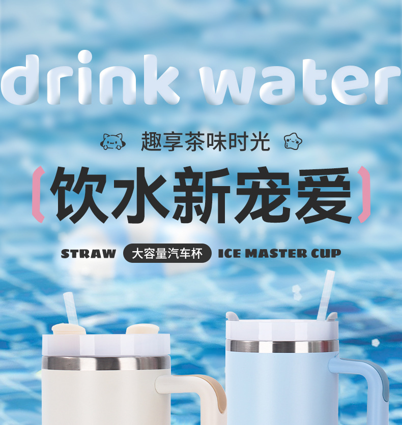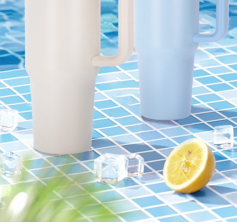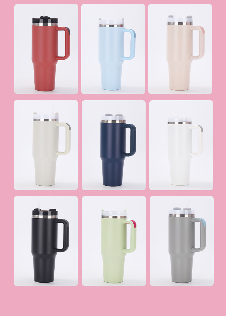 국경 간 40oz 2 세대 자동차 컵 대용량 304 스테인레스 스틸 보온병 컵 핸들 짚 냉간 보호 얼음 컵