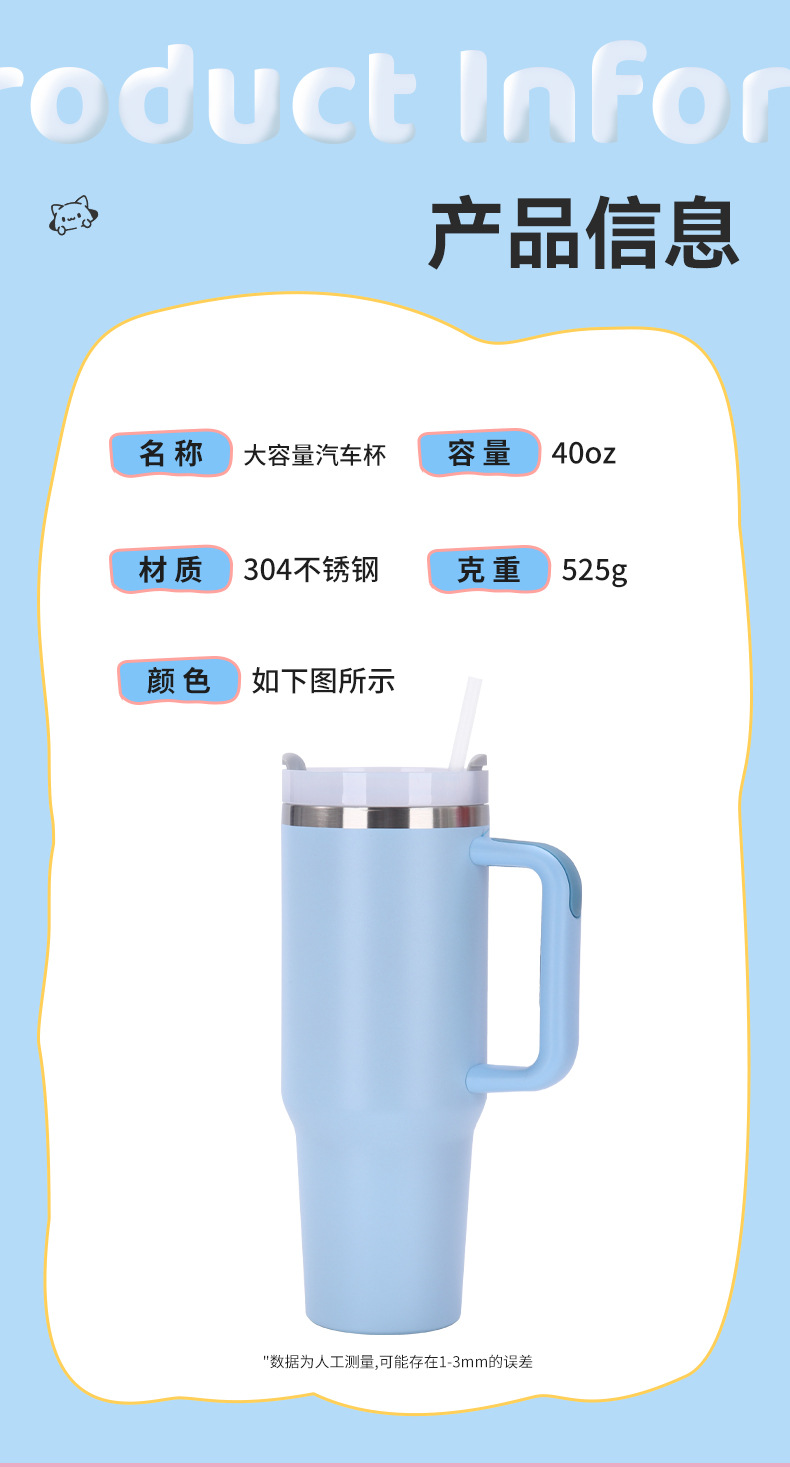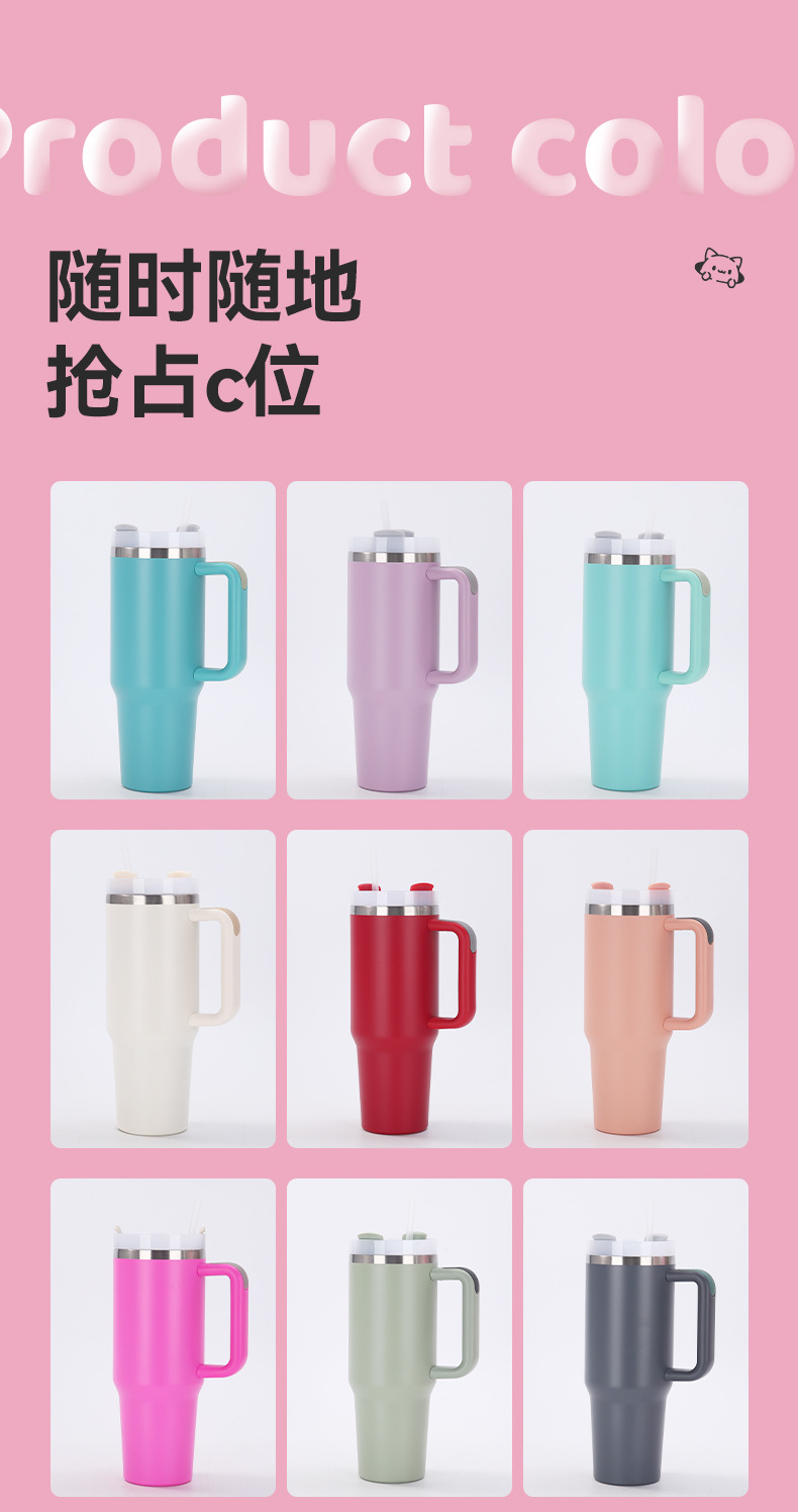 국경 간 40oz 2 세대 자동차 컵 대용량 304 스테인레스 스틸 보온병 컵 핸들 짚 냉간 보호 얼음 컵스토어 가기