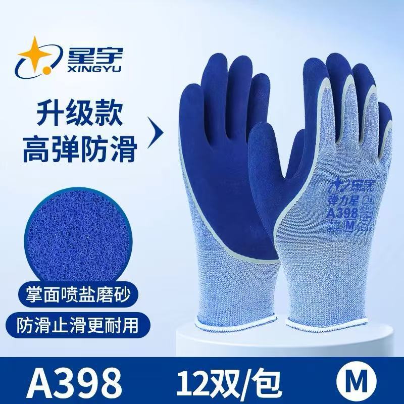 Xingyu 고급 모델 A398 미끄럼 방지 내마모성 탄성 장갑 노동 보호 내구성 통기성 작업 노동 보호 고무스토어 가기