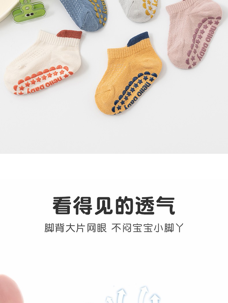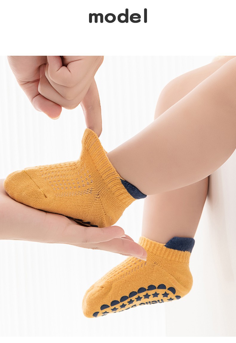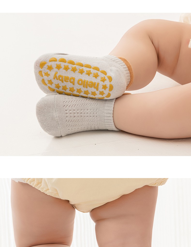 아기 바닥 양말, 아기 양말, 여름 얇은 메쉬 통기성 순면, 미끄럼 방지, 시원한 유아용 양말