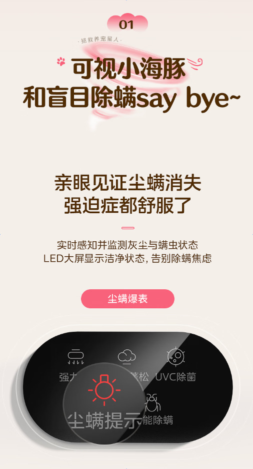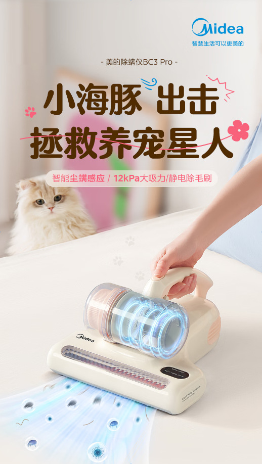 Midea 진드기 제거제 가정용 진공 청소기 뜨거운 공기 자외선 흡입 작은 돌고래 BC3pro 휴대용 진공 청소기 및 진드기 제거스토어 가기