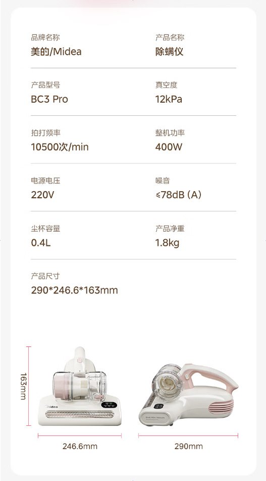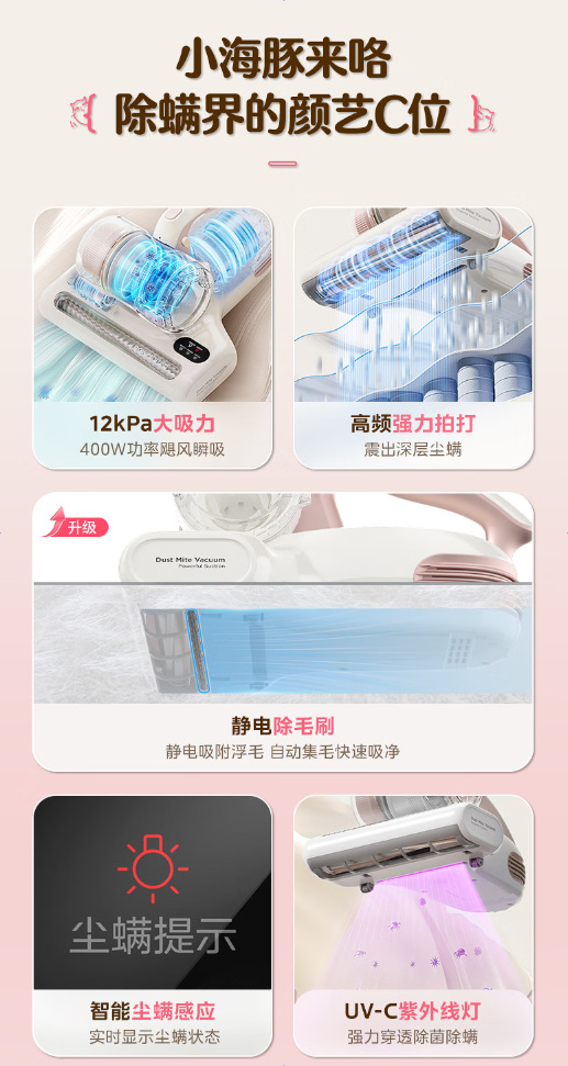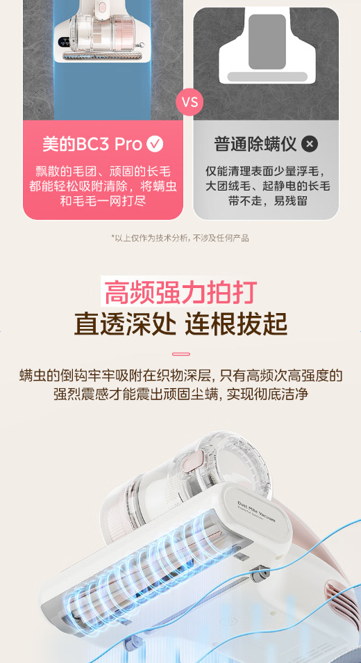 Midea 진드기 제거제 가정용 진공 청소기 뜨거운 공기 자외선 흡입 작은 돌고래 BC3pro 휴대용 진공 청소기 및 진드기 제거