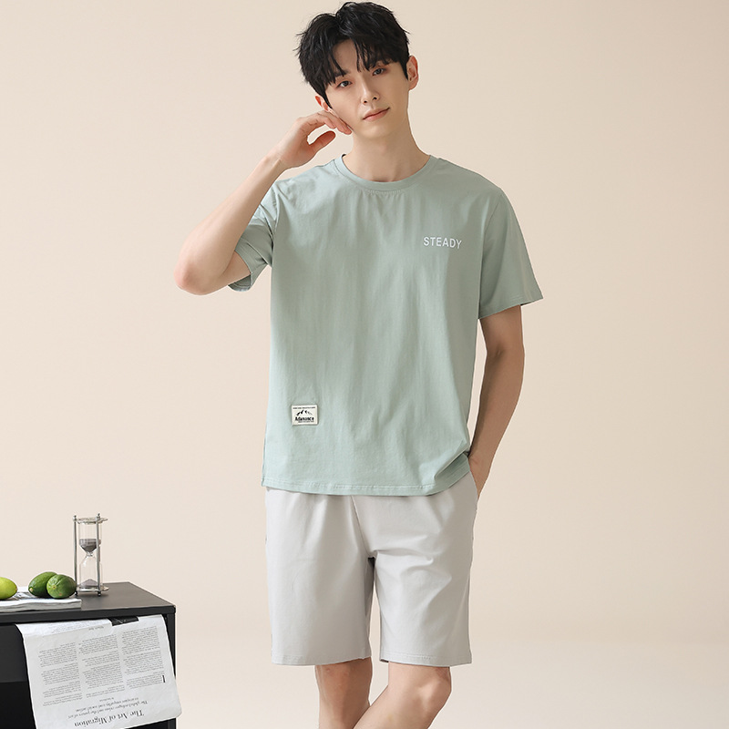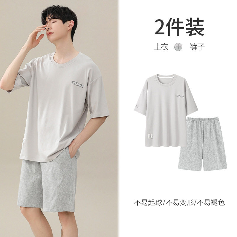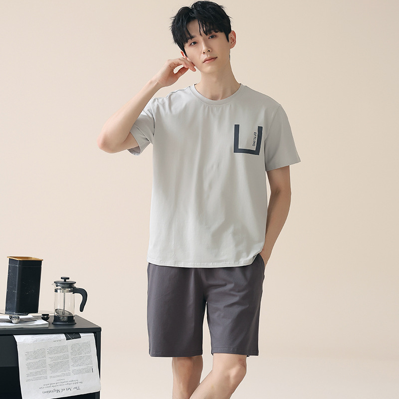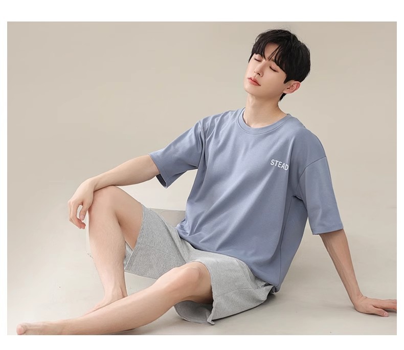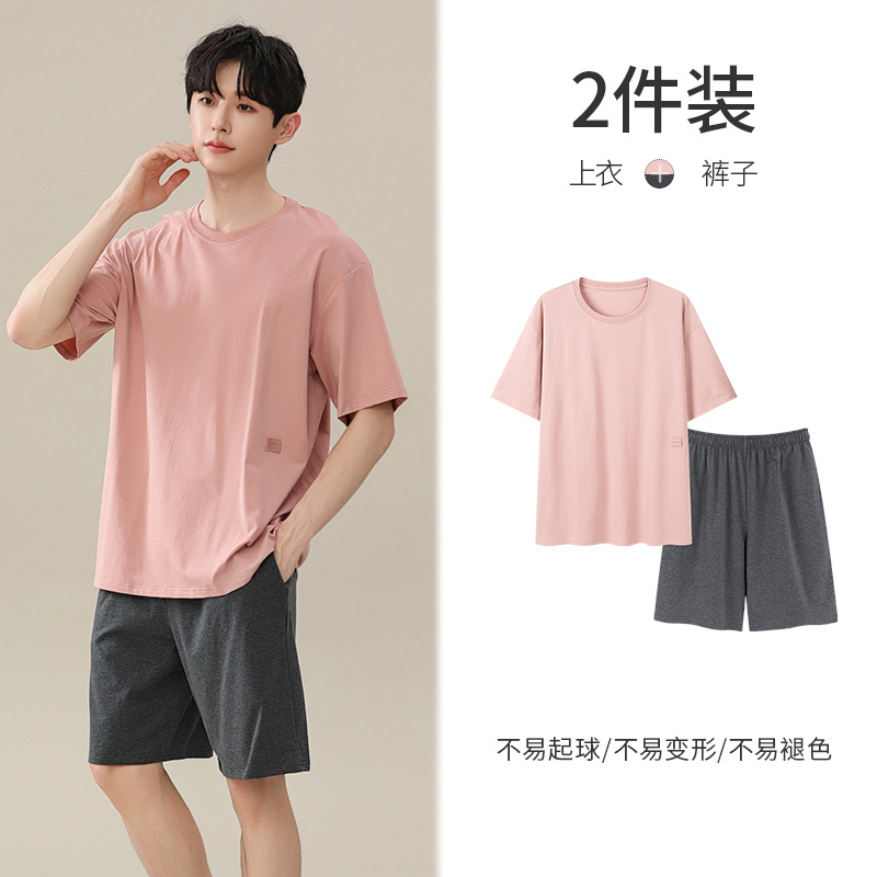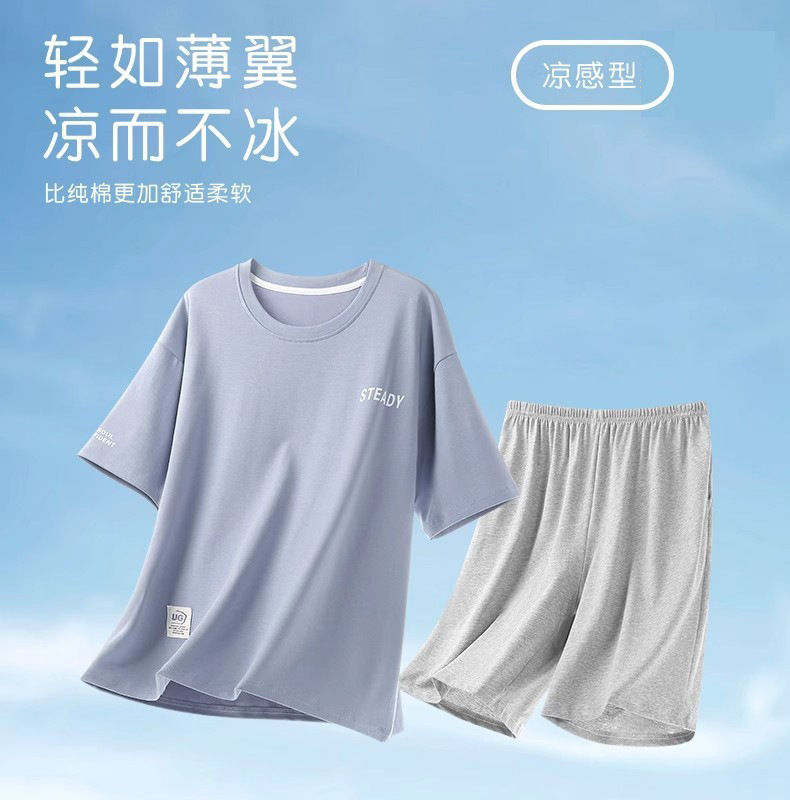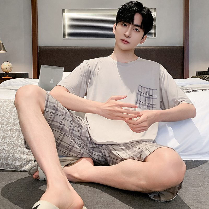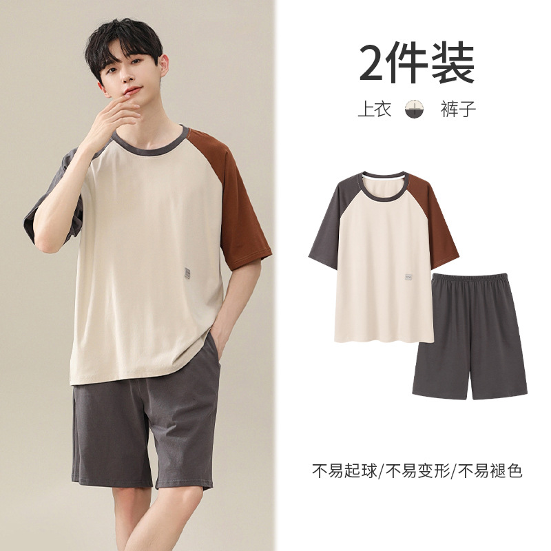 시원한 잠옷 남성 여름 얇은 얼음 실크 여름 라운드 넥 단순 솔리드 컬러 반팔 반바지 남성 홈웨어 세트