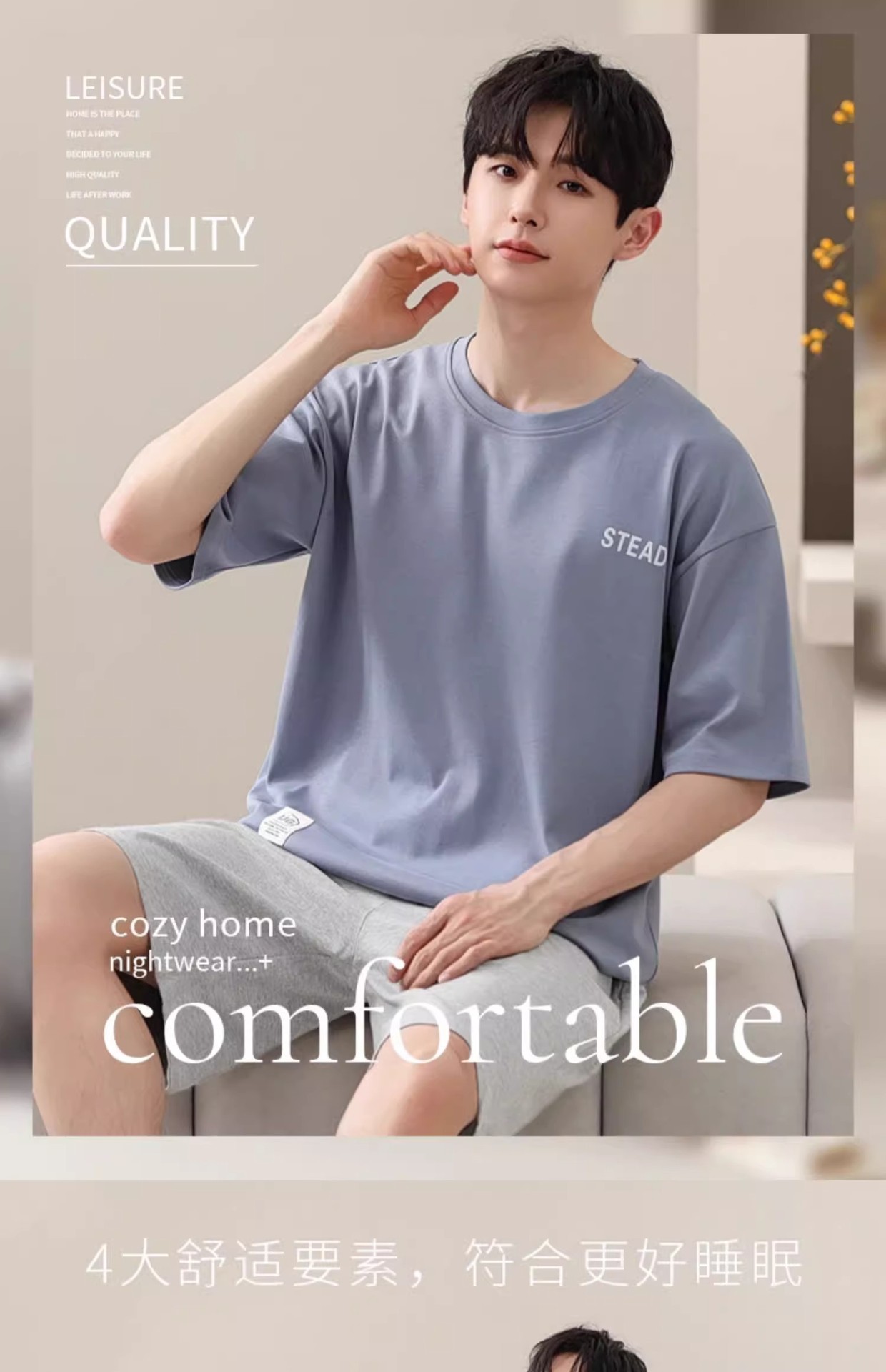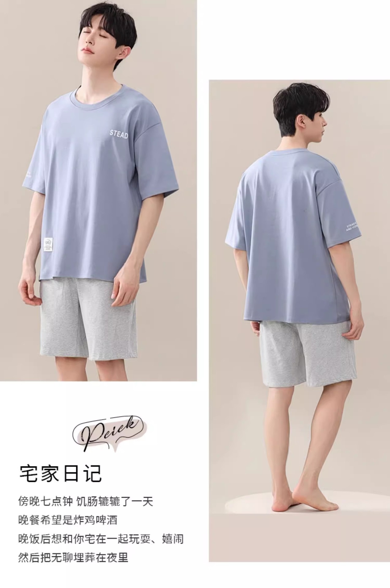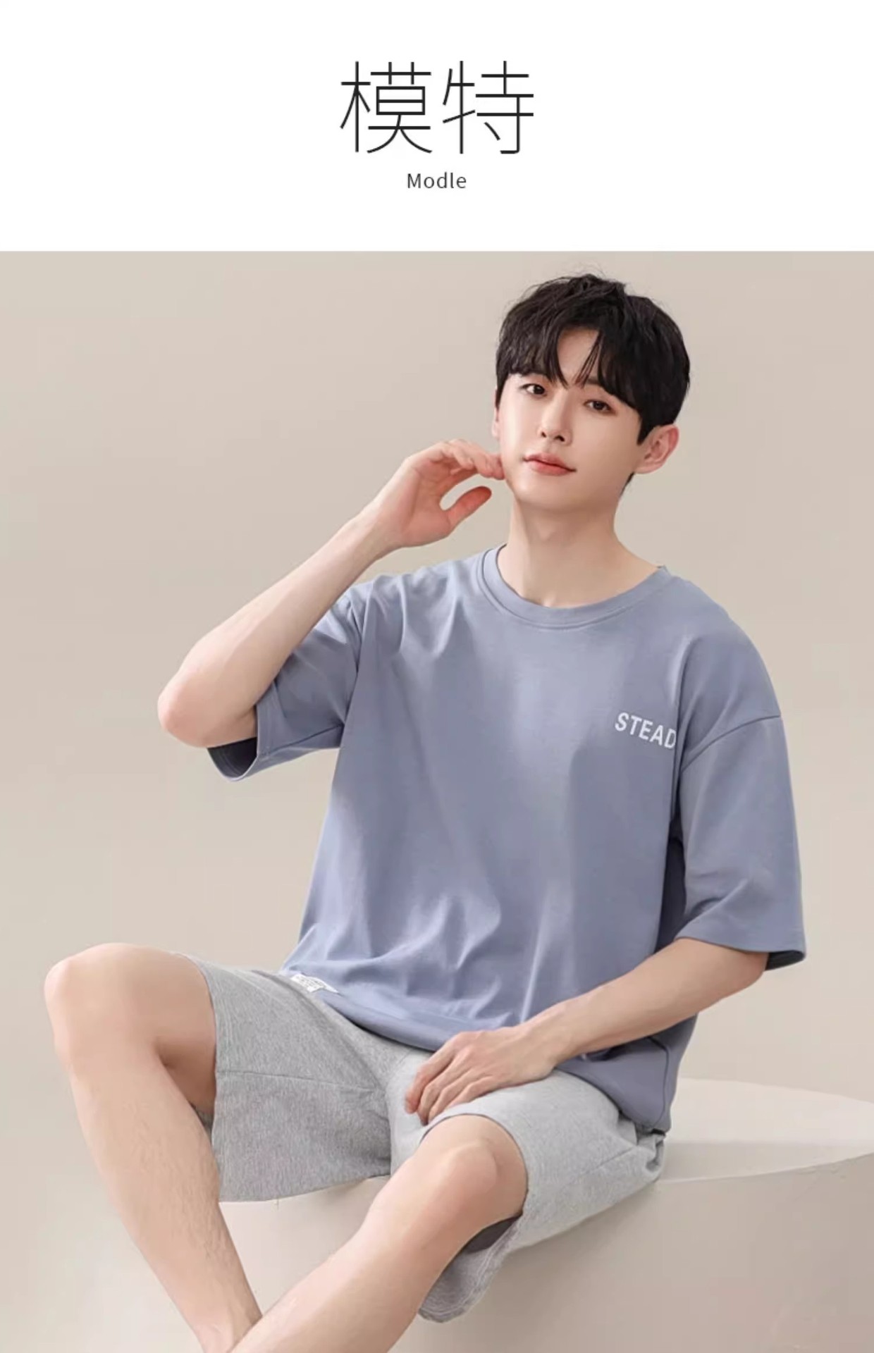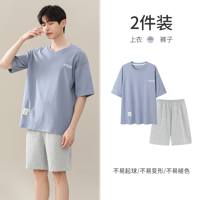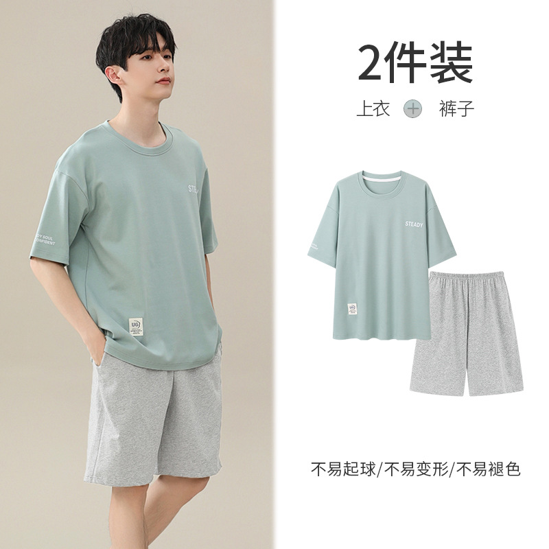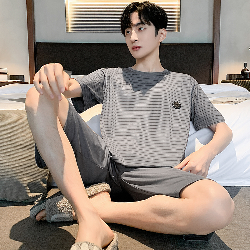 시원한 잠옷 남성 여름 얇은 얼음 실크 여름 라운드 넥 단순 솔리드 컬러 반팔 반바지 남성 홈웨어 세트