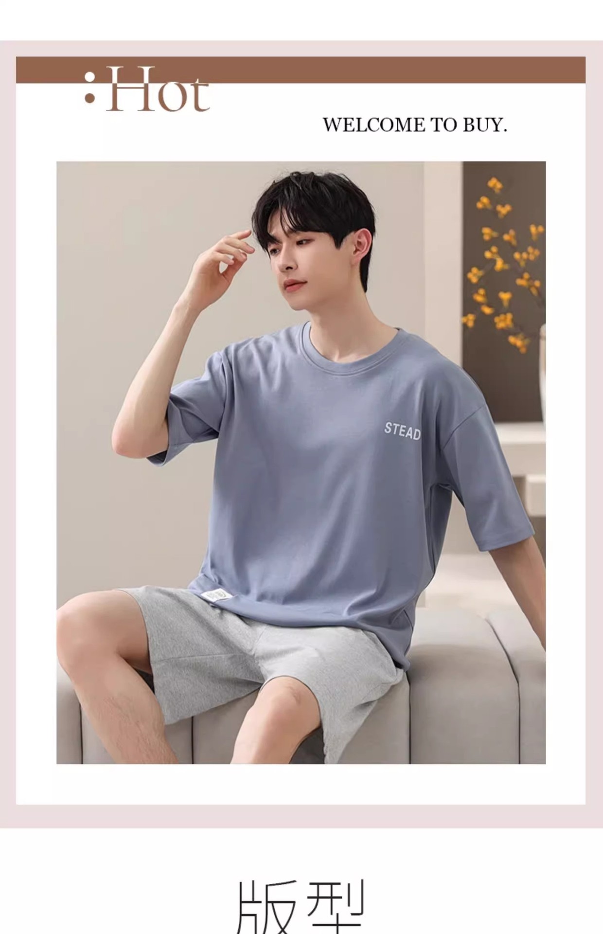 시원한 잠옷 남성 여름 얇은 얼음 실크 여름 라운드 넥 단순 솔리드 컬러 반팔 반바지 남성 홈웨어 세트스토어 가기