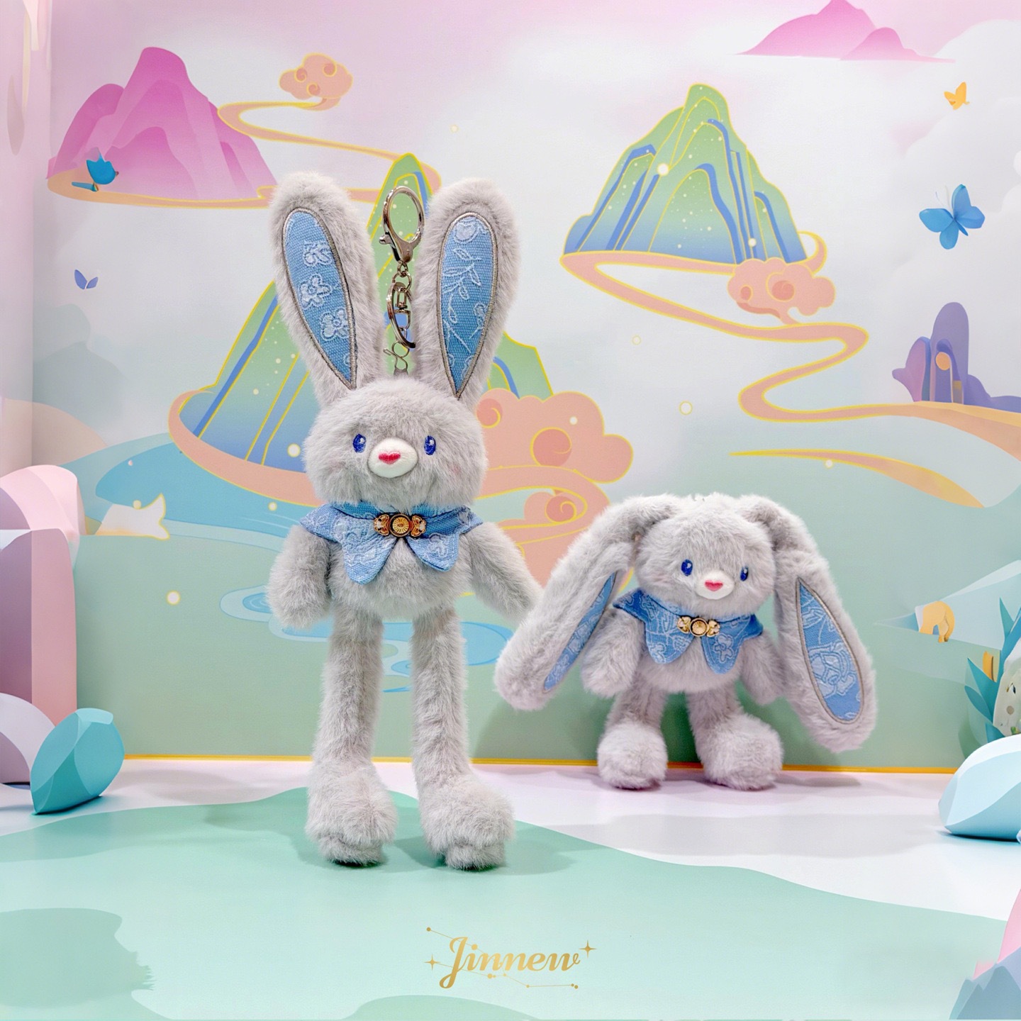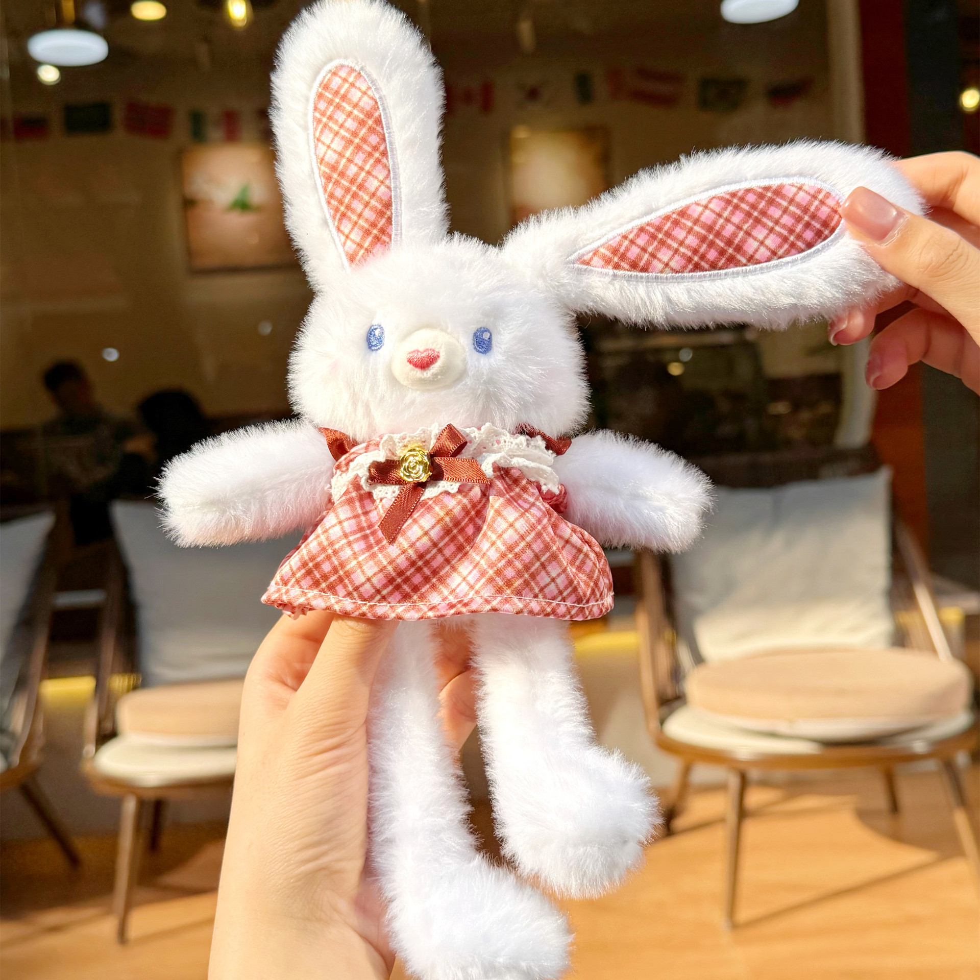 • 파란색과 흰색 체크무늬 토끼 흰색