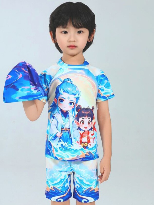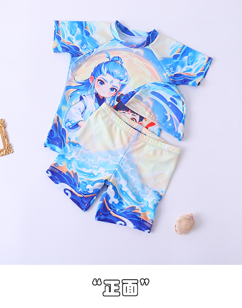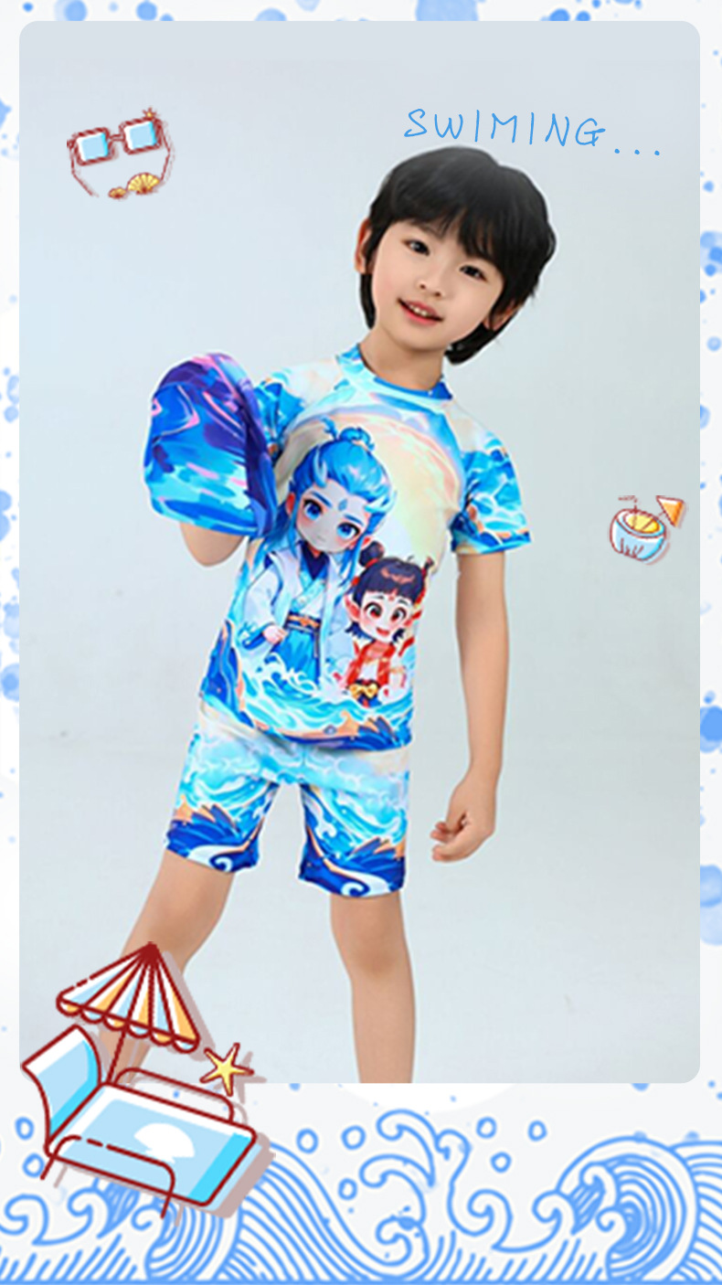 2025 핫 스타일 소년 애니메이션 Nezha 2 Magic Child 수영복 어린이 스플릿 자외선 차단제 속건성 수영복