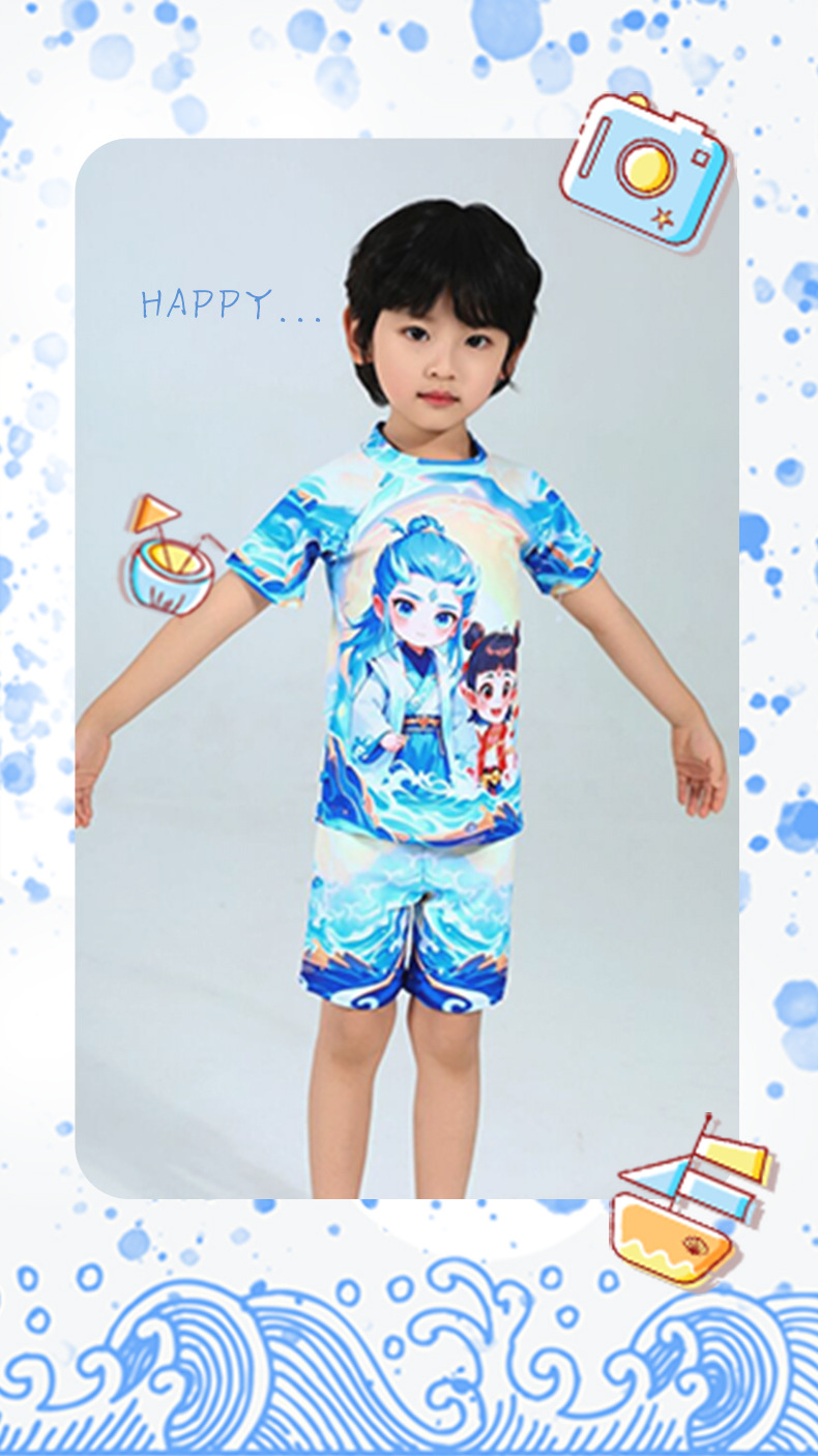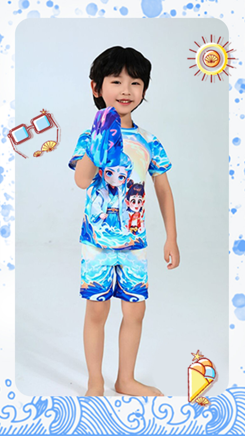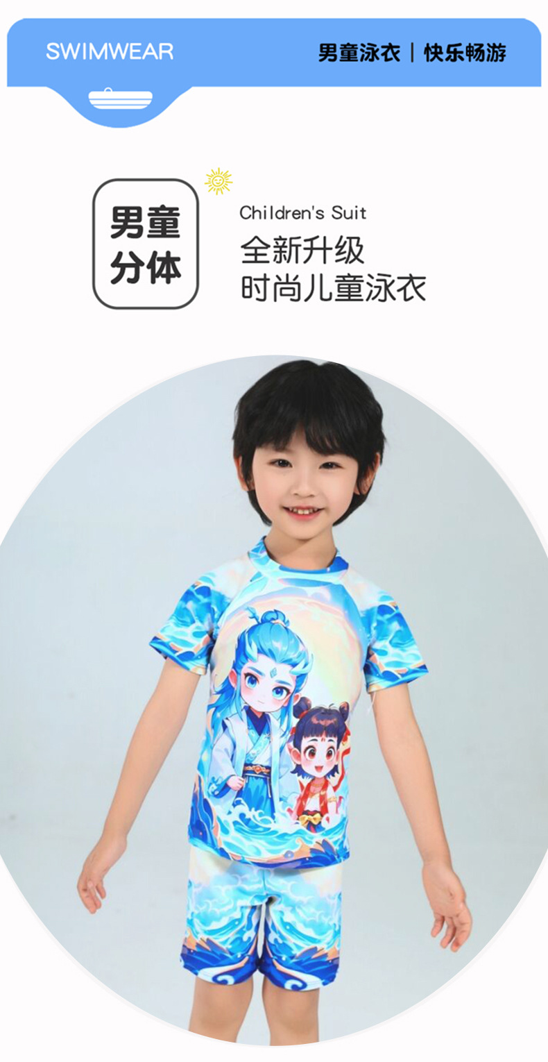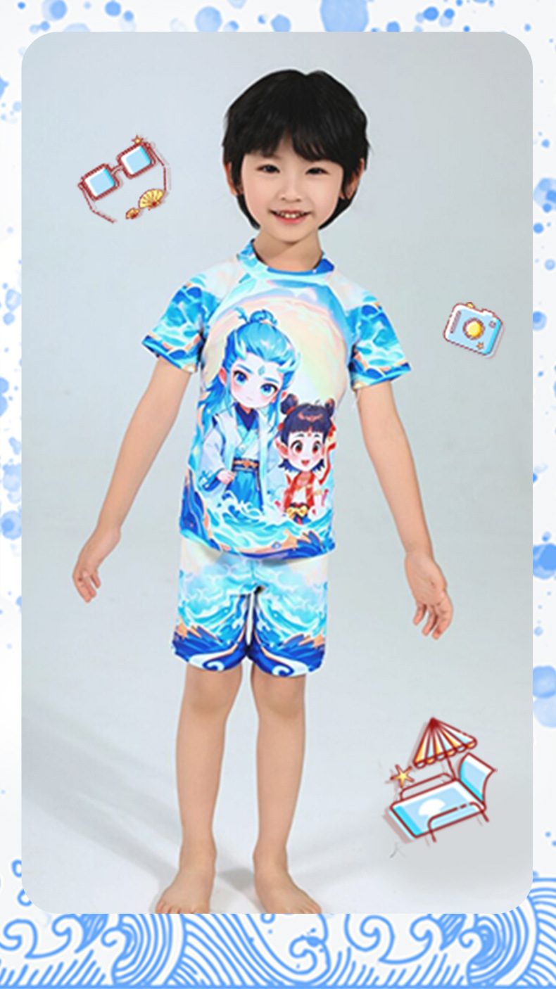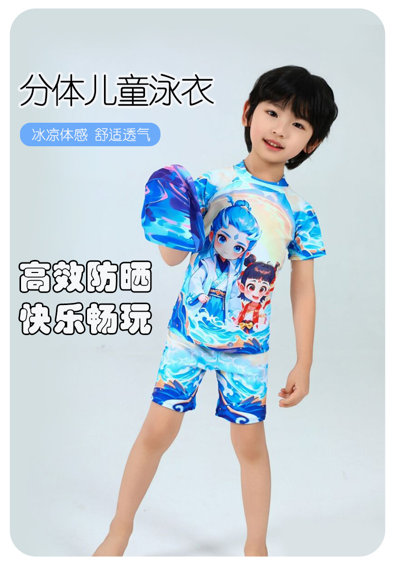 2025 핫 스타일 소년 애니메이션 Nezha 2 Magic Child 수영복 어린이 스플릿 자외선 차단제 속건성 수영복스토어 가기