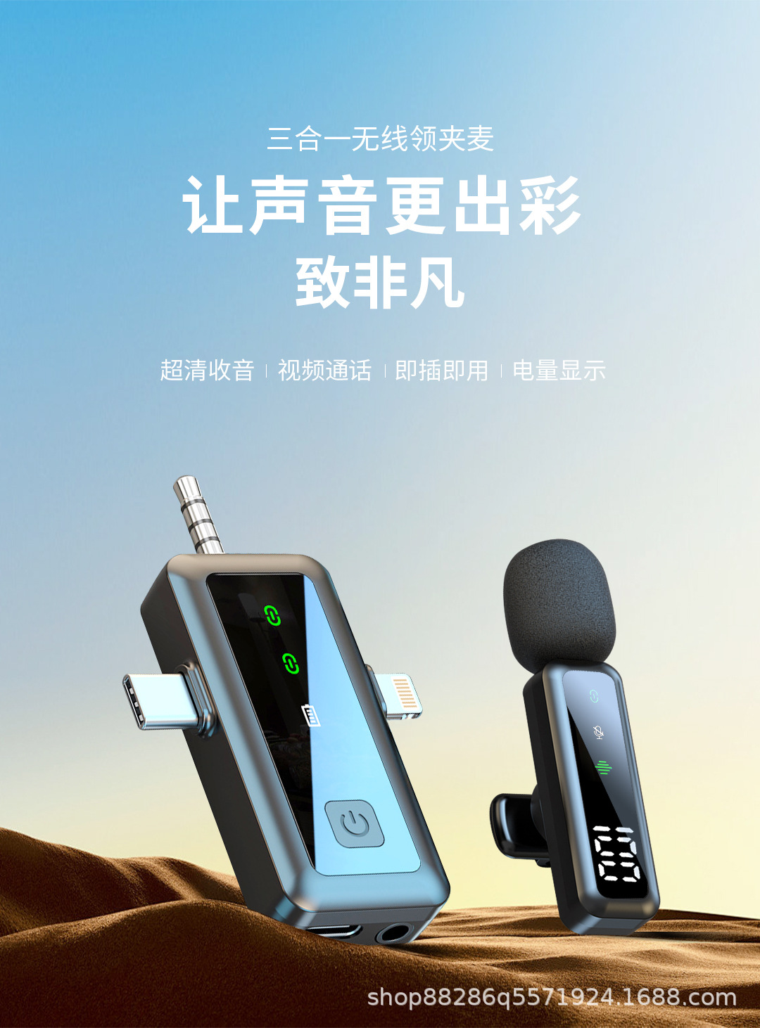 무선 라발리에 마이크 3개의 인터페이스 새로운 개인 모델 야외 라이브 방송 짧은 비디오 촬영 Bluetooth 라디오 마이크