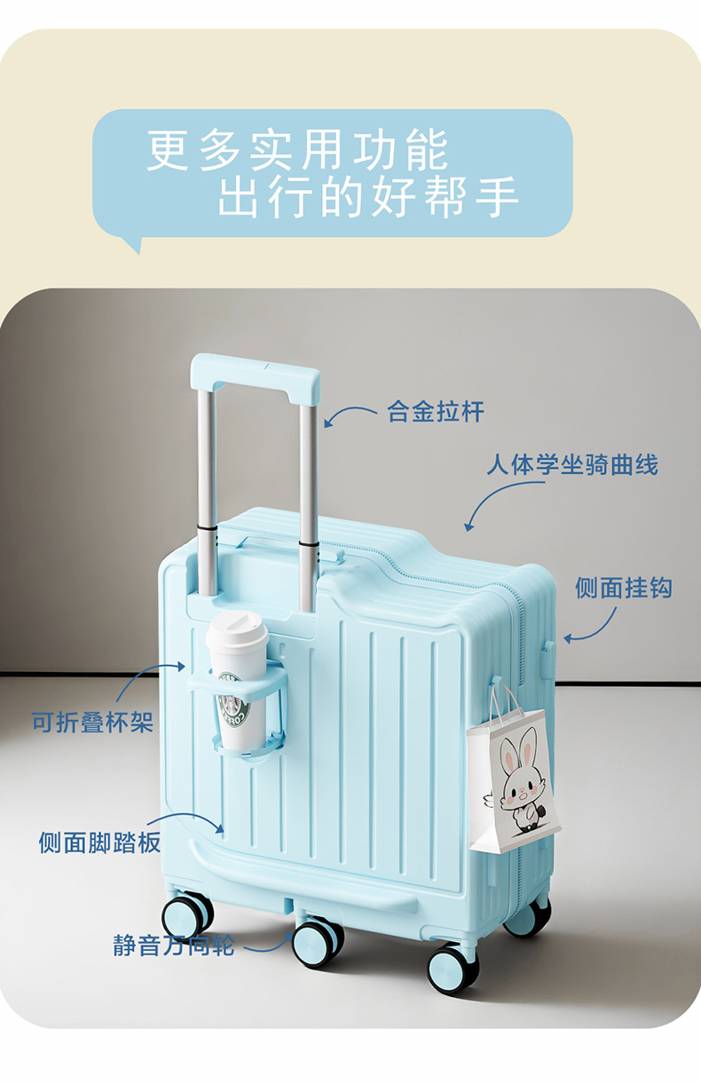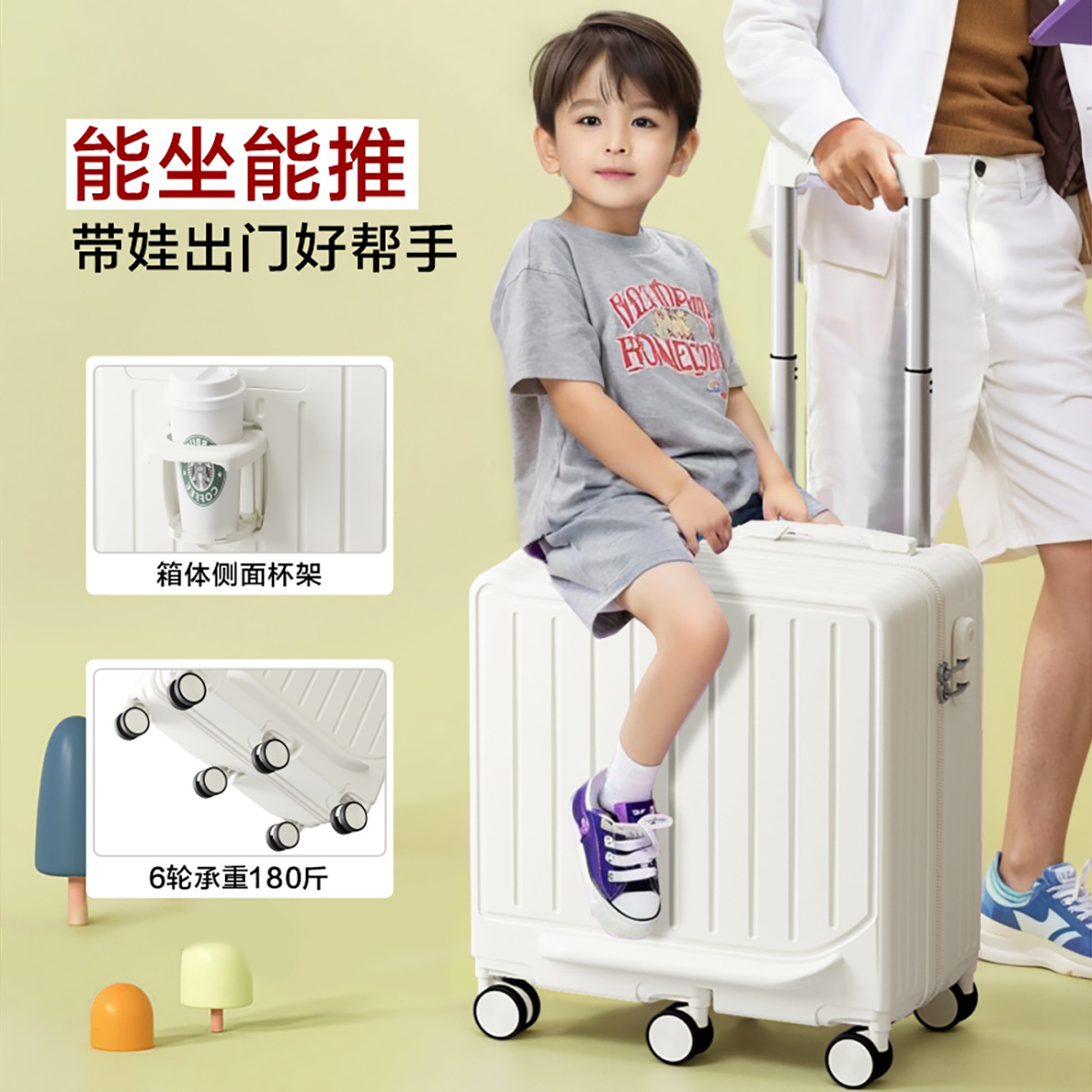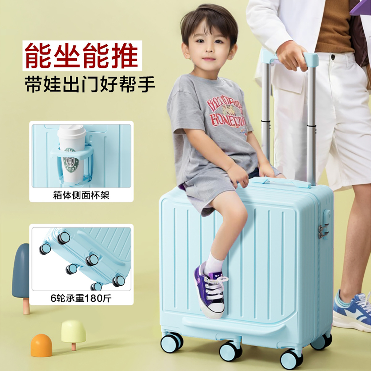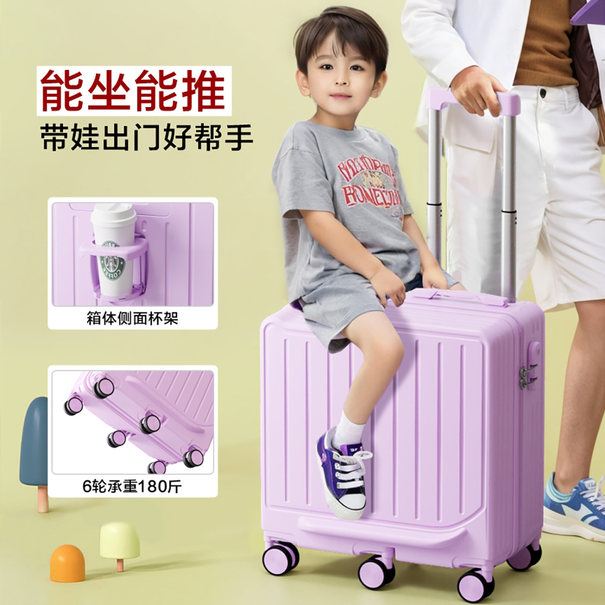 새로운 어린이용 여행가방은 회전식 바퀴가 달린 트롤리 박스로 탈 수 있으며, 20inch 비밀번호가 있는 기내 반입용 가방으로 아이와 함께 여행할 때 필수품입니다.