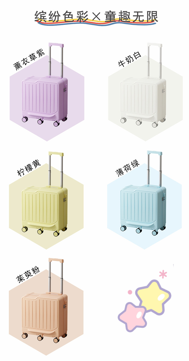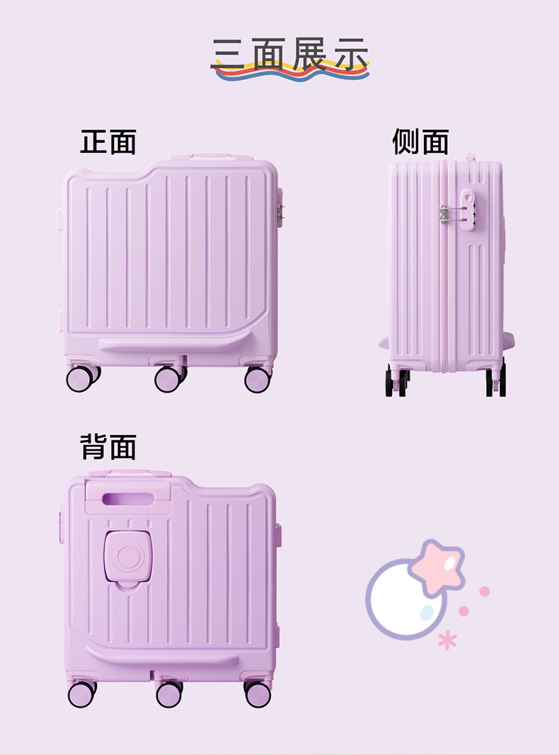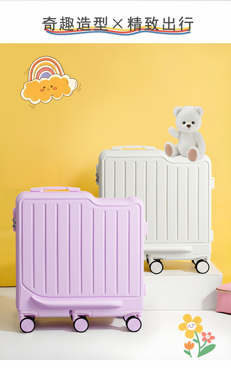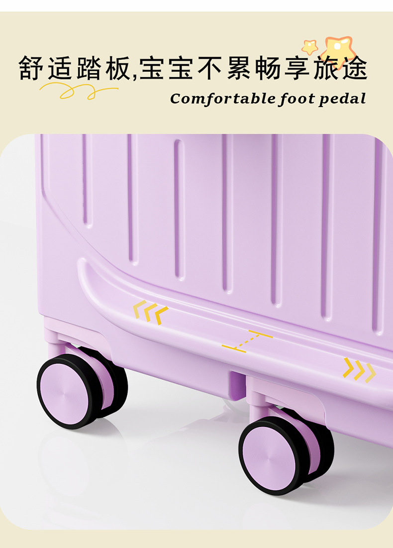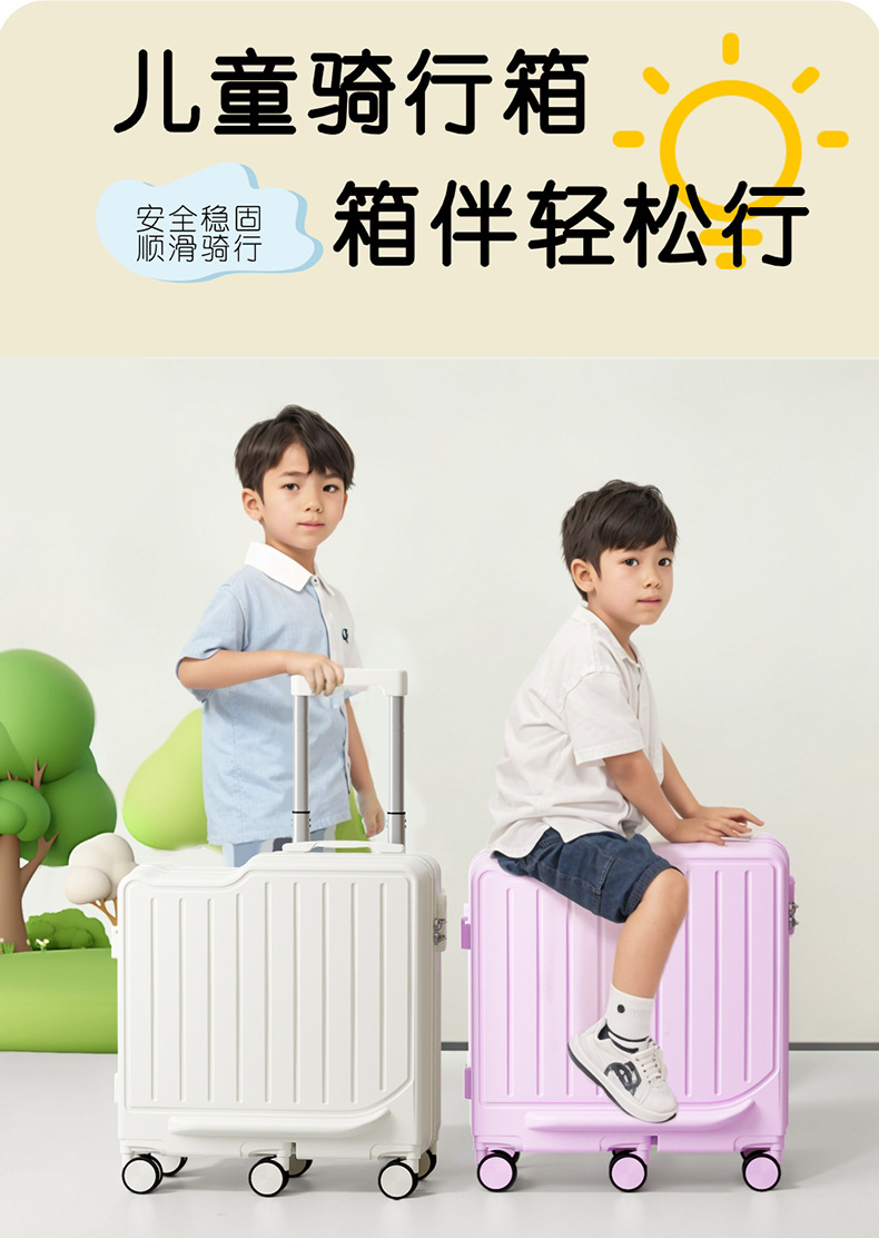 새로운 어린이용 여행가방은 회전식 바퀴가 달린 트롤리 박스로 탈 수 있으며, 20inch 비밀번호가 있는 기내 반입용 가방으로 아이와 함께 여행할 때 필수품입니다.