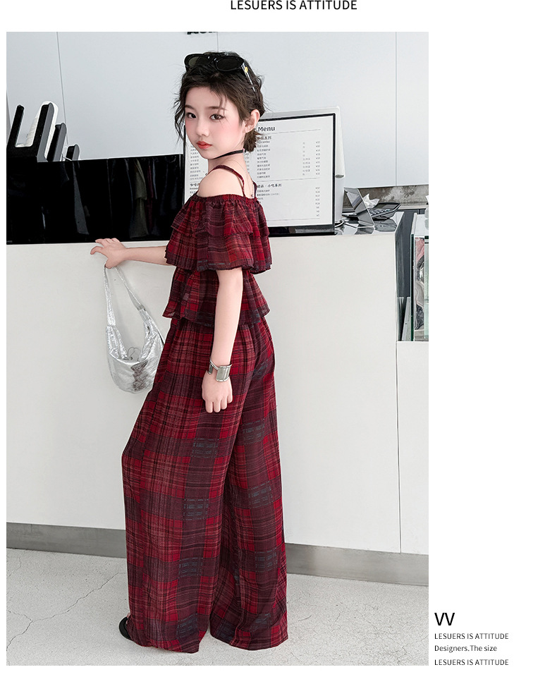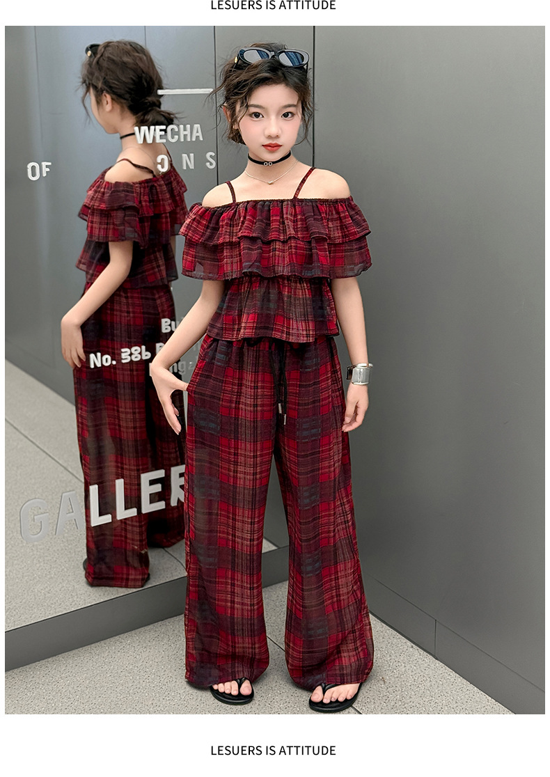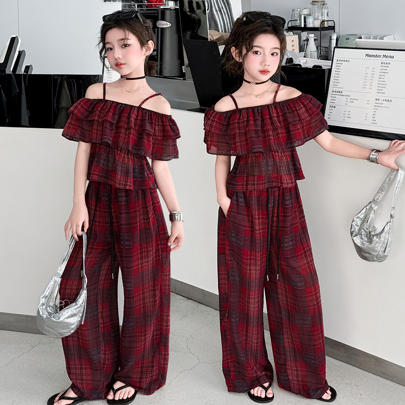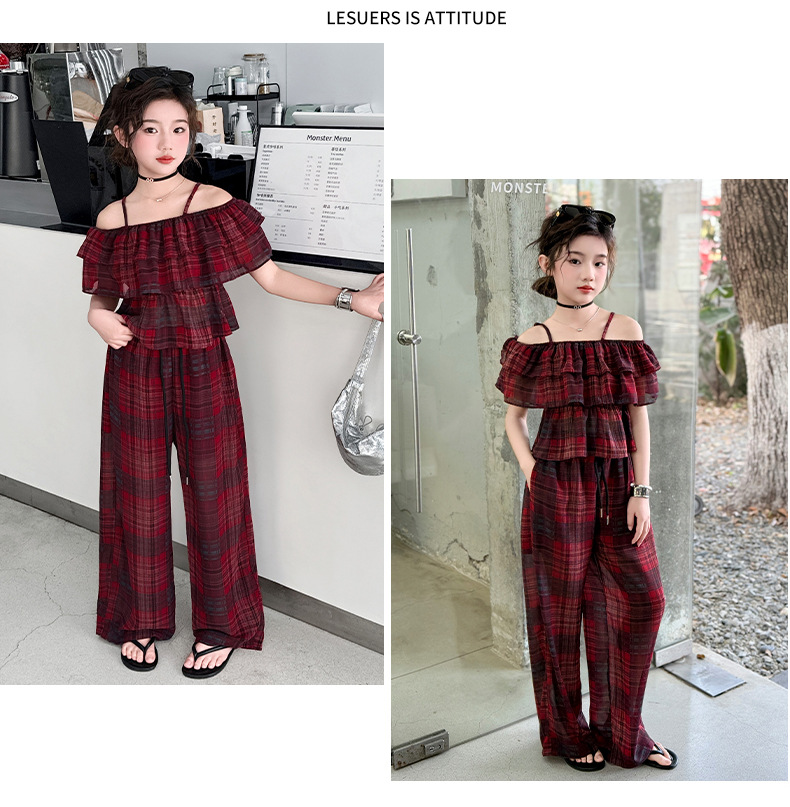 여자를위한 원 숄더 쉬폰 슈트 2025 여름 새로운 패션 원 숄더 쉬폰 반팔 와이드 레그 팬츠 투피스 세트