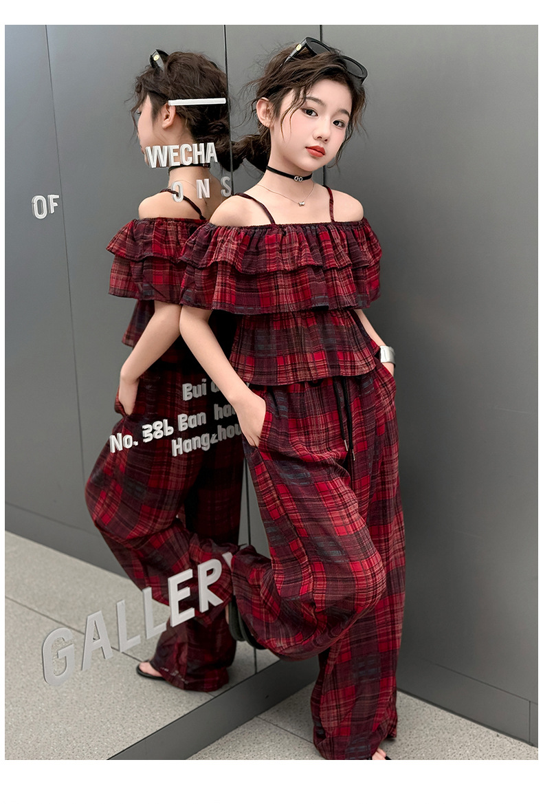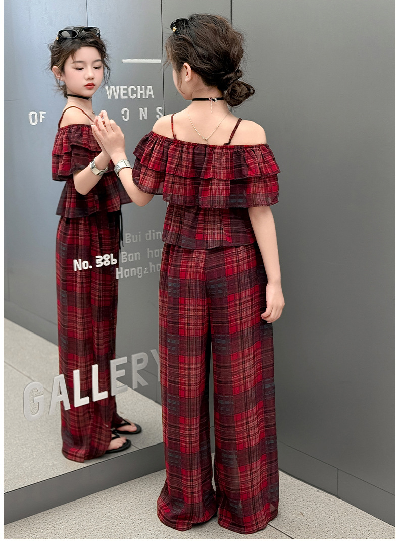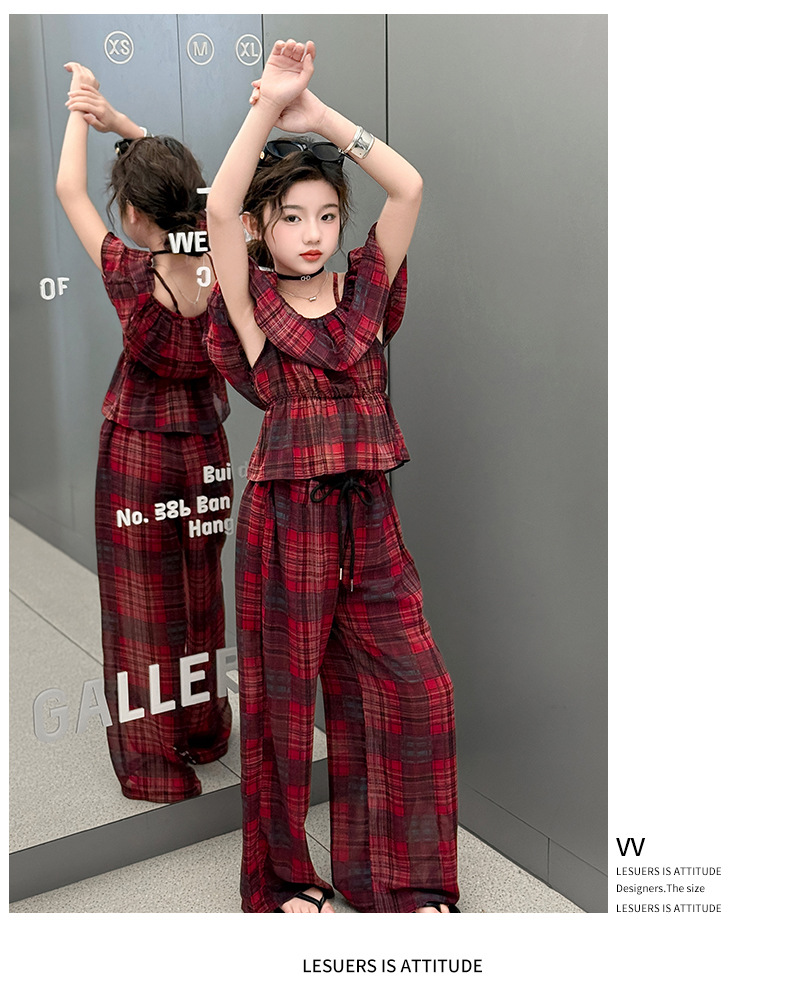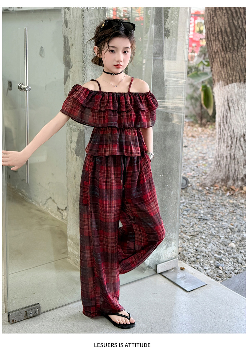 여자를위한 원 숄더 쉬폰 슈트 2025 여름 새로운 패션 원 숄더 쉬폰 반팔 와이드 레그 팬츠 투피스 세트