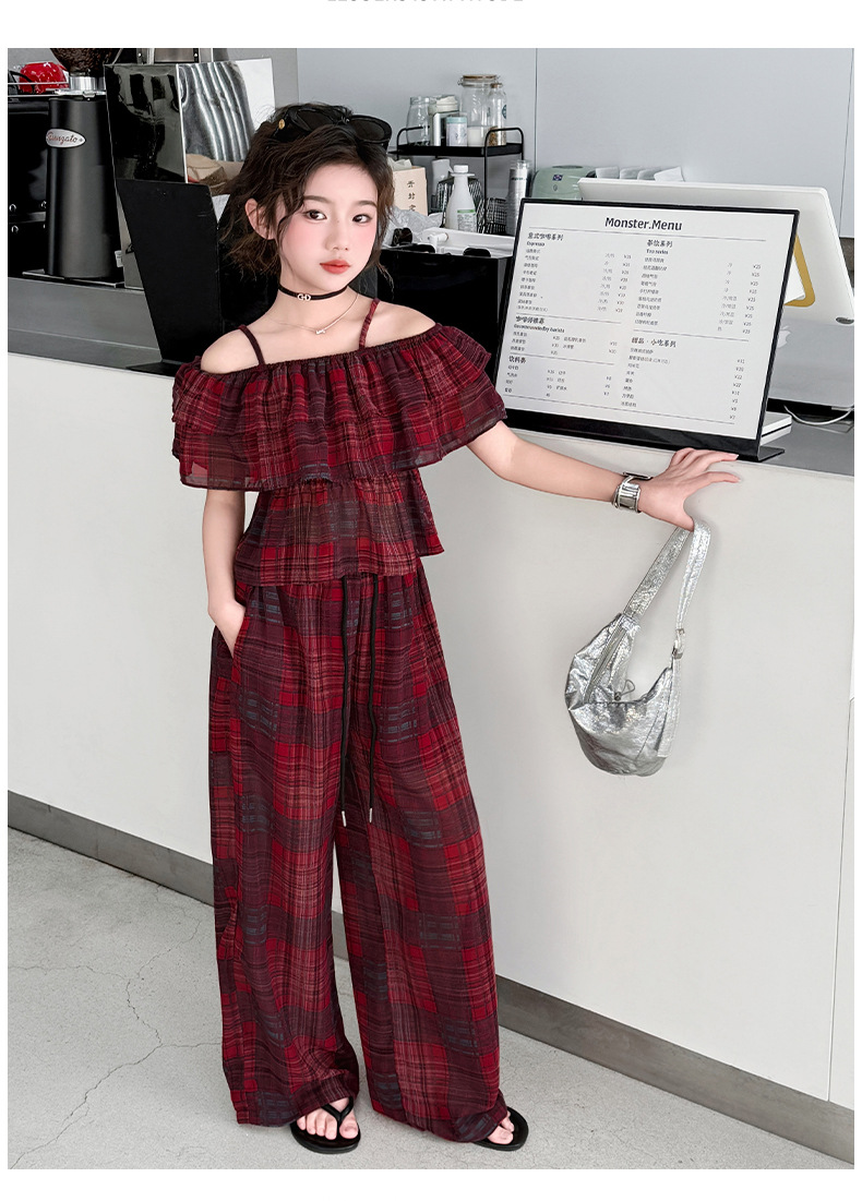 여자를위한 원 숄더 쉬폰 슈트 2025 여름 새로운 패션 원 숄더 쉬폰 반팔 와이드 레그 팬츠 투피스 세트스토어 가기