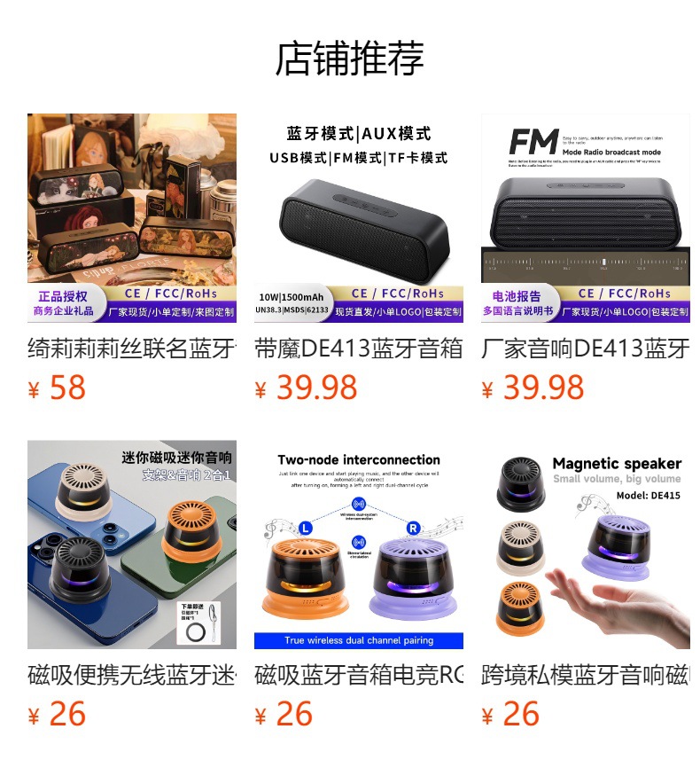 공장 직매 DE415 자기 흡입 블루투스 스피커, 고음량 RGB 게임용 책상, 휴대용 야외 블루투스 스피커스토어 가기
