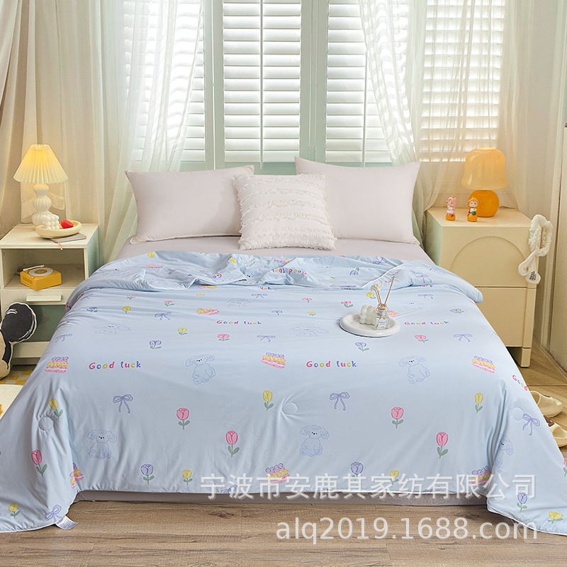 클래스 A 시원한 실크 여름 이불 2025 새로운 얼음 실크 에어컨 이불 더블 기계 세탁 가능한 어린이 유치원 얇은 이불스토어 가기