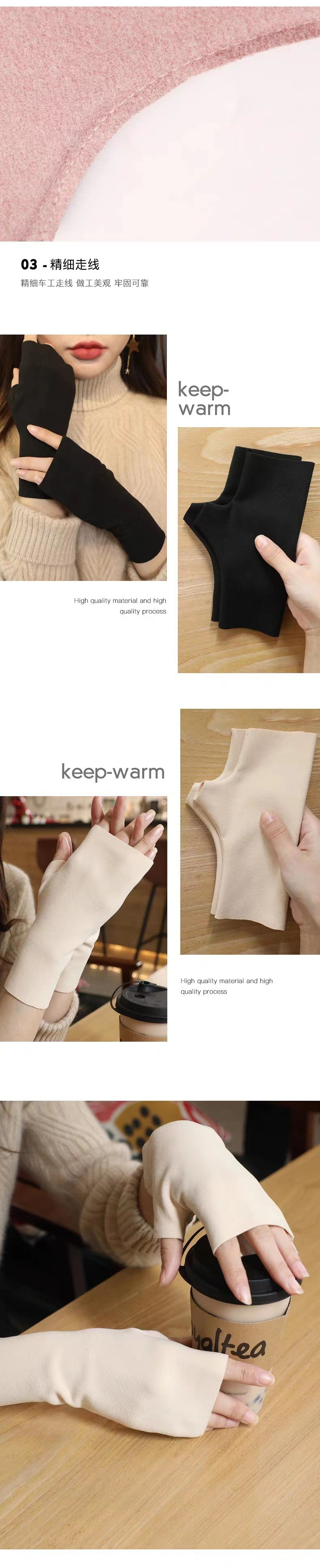 쓰기용 가을 겨울 자체 발열 플러스 벨벳 반 손가락 장갑, 성인용 따뜻한 독일 벨벳 핑거리스 반 손가락 터치 스크린 타이핑 고품질