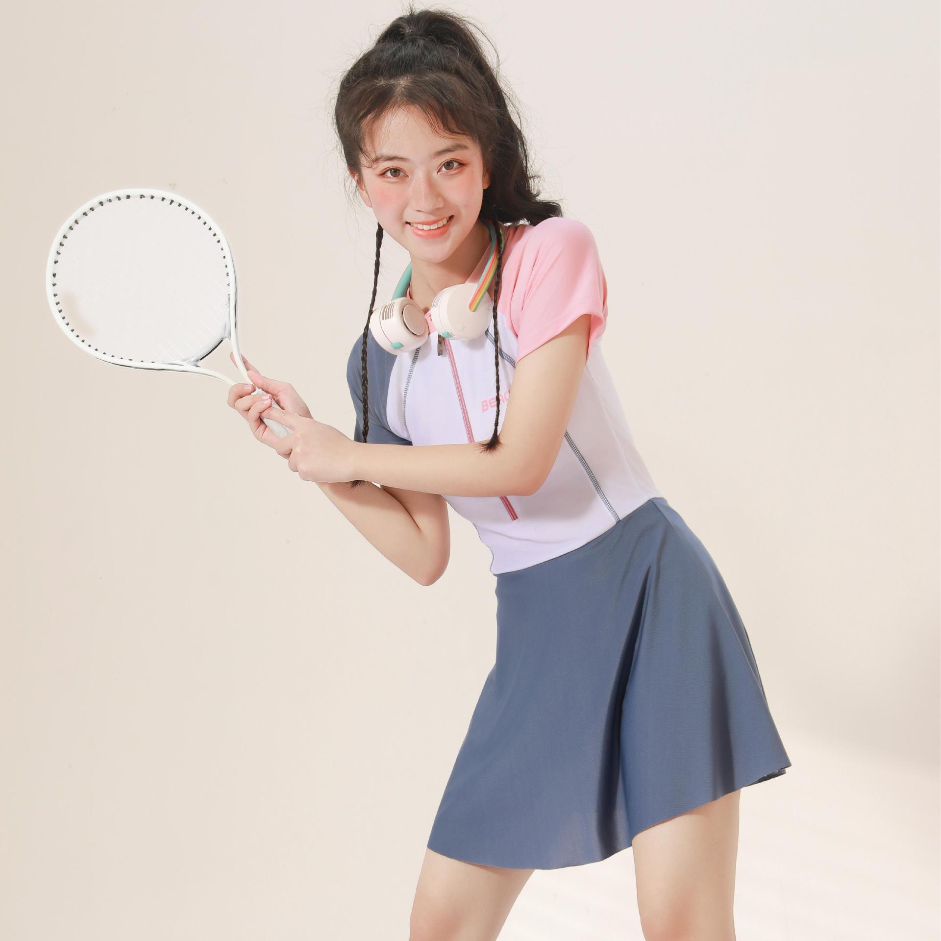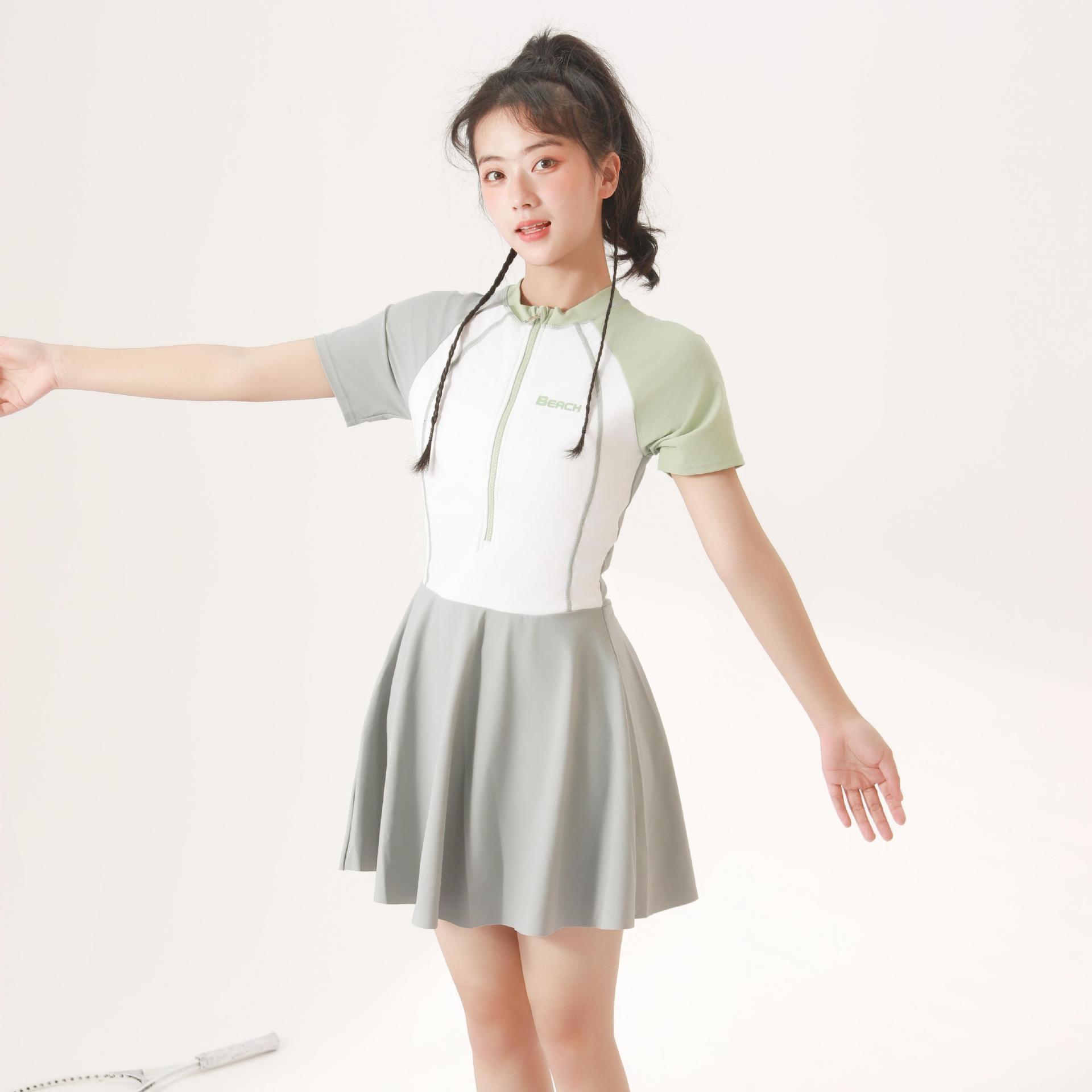 큰 어린이와 소녀를 위한 새로운 어린이 수영복, 원피스 스커트 수영복, 달콤하고 귀여운 소녀, 컬러 블록 온천 소녀스토어 가기
