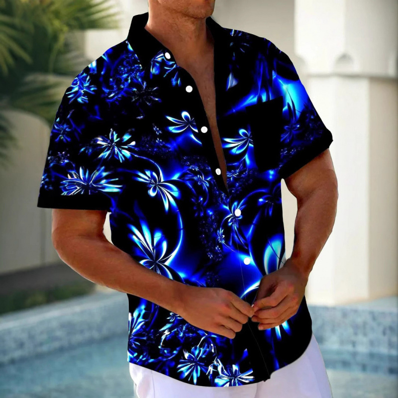 국경 간 하와이 멀티 컬러 인쇄 맞춤형 캐주얼 인쇄 느슨한 남성 카디건 여름 반팔 셔츠