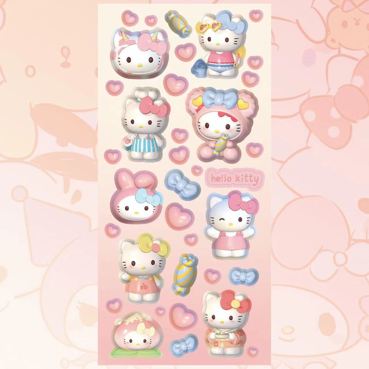 산리오 구카 레이저 스티커 3D 입체 한국산 미세 반짝이 귀여운 접착식 파차도그 데코레이션 핸드북스토어 가기