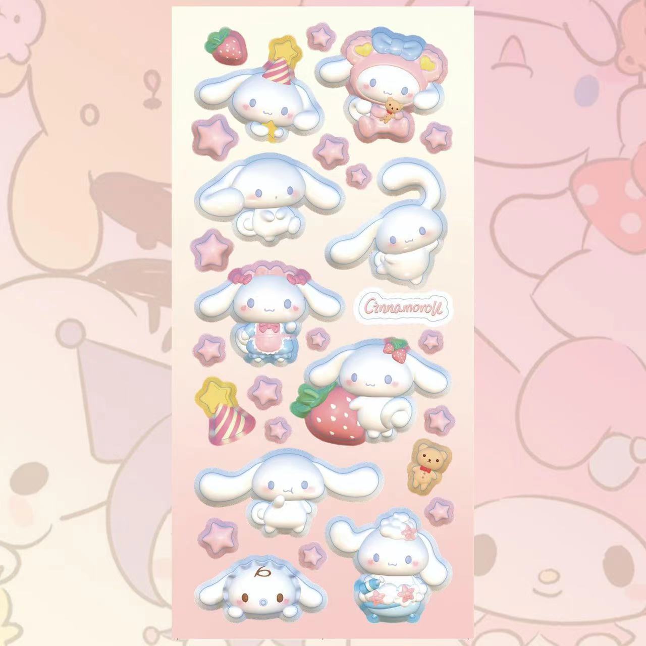 산리오 구카 레이저 스티커 3D 입체 한국산 미세 반짝이 귀여운 접착식 파차도그 데코레이션 핸드북