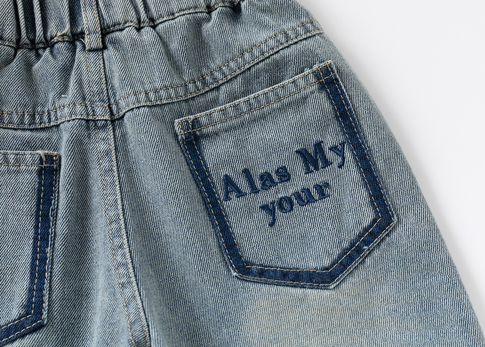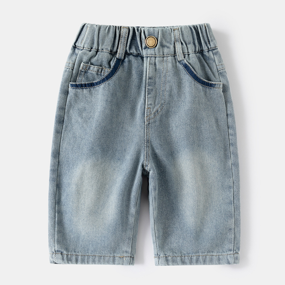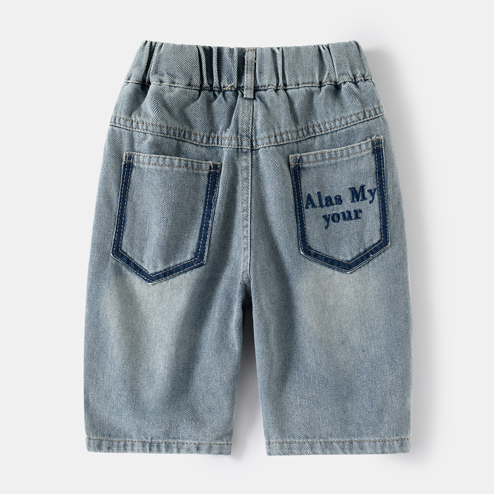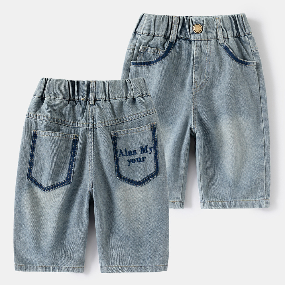 남아용 베이비 반바지, 중대형 아동용 베이비 2025 여름 신작 아동용 포켓 레터 데님 반바지스토어 가기