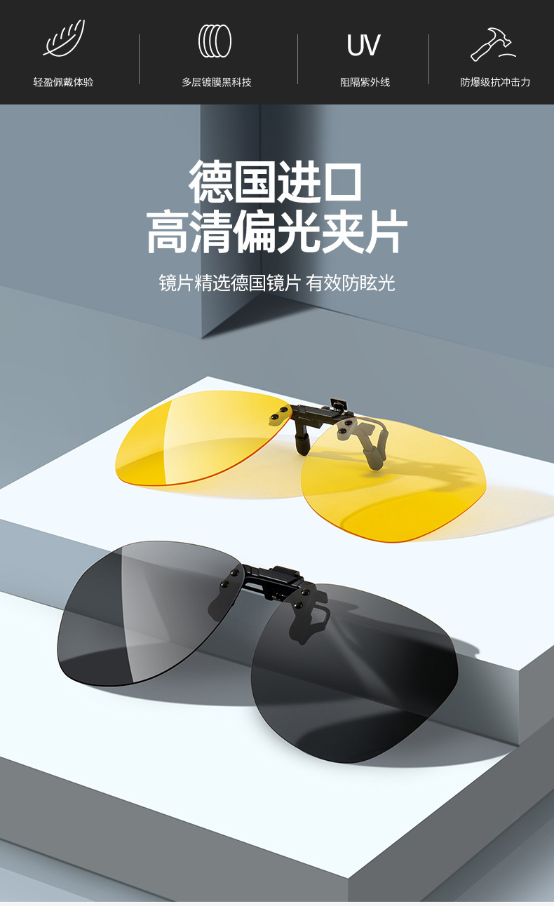 여성용 및 남성용 선글라스 클립온 근시 안경, 운전용 초경량 자외선 차단 선글라스, 플립업 편광 클립온