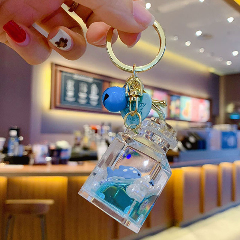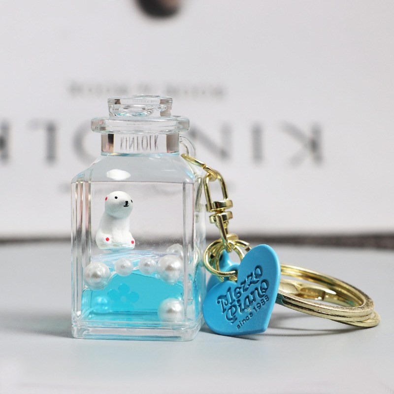 창의적인 오일 마린 유사 열쇠고리, 아름답고 귀여운 떠다니는 병, 자동차 열쇠 펜던트, 학교 가방 펜던트스토어 가기
